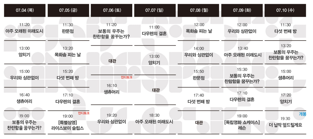 07.11-07.17 상영시간표 (0) | 2024.07.05 |