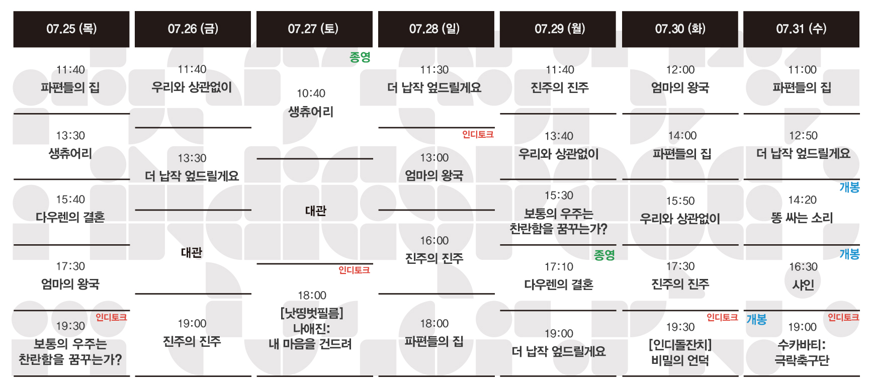 | 07.11-07.17 상영시간표 (0) | 2024.07.05 |