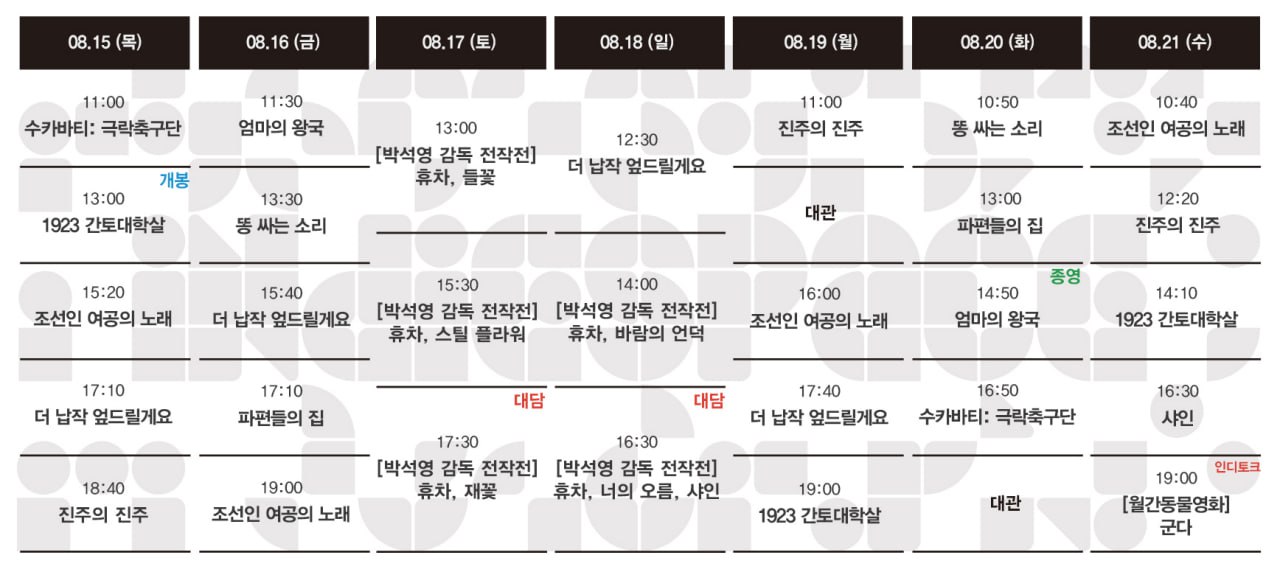 | 08.22-08.28 상영시간표 (0) | 2024.08.14 |