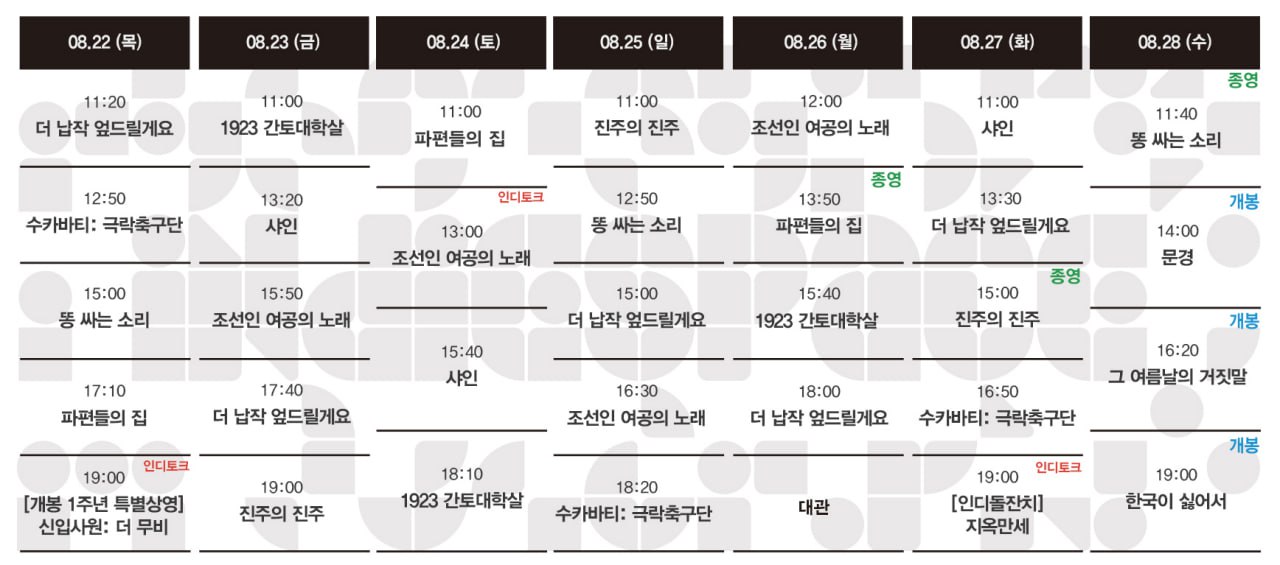 | 08.08-08.14 상영시간표 (0) | 2024.08.01 |