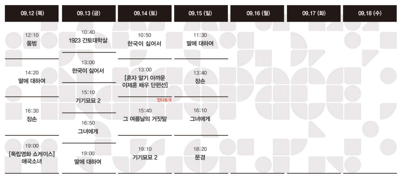 | 09.19-09.25 상영시간표 (0) | 2024.09.13 |