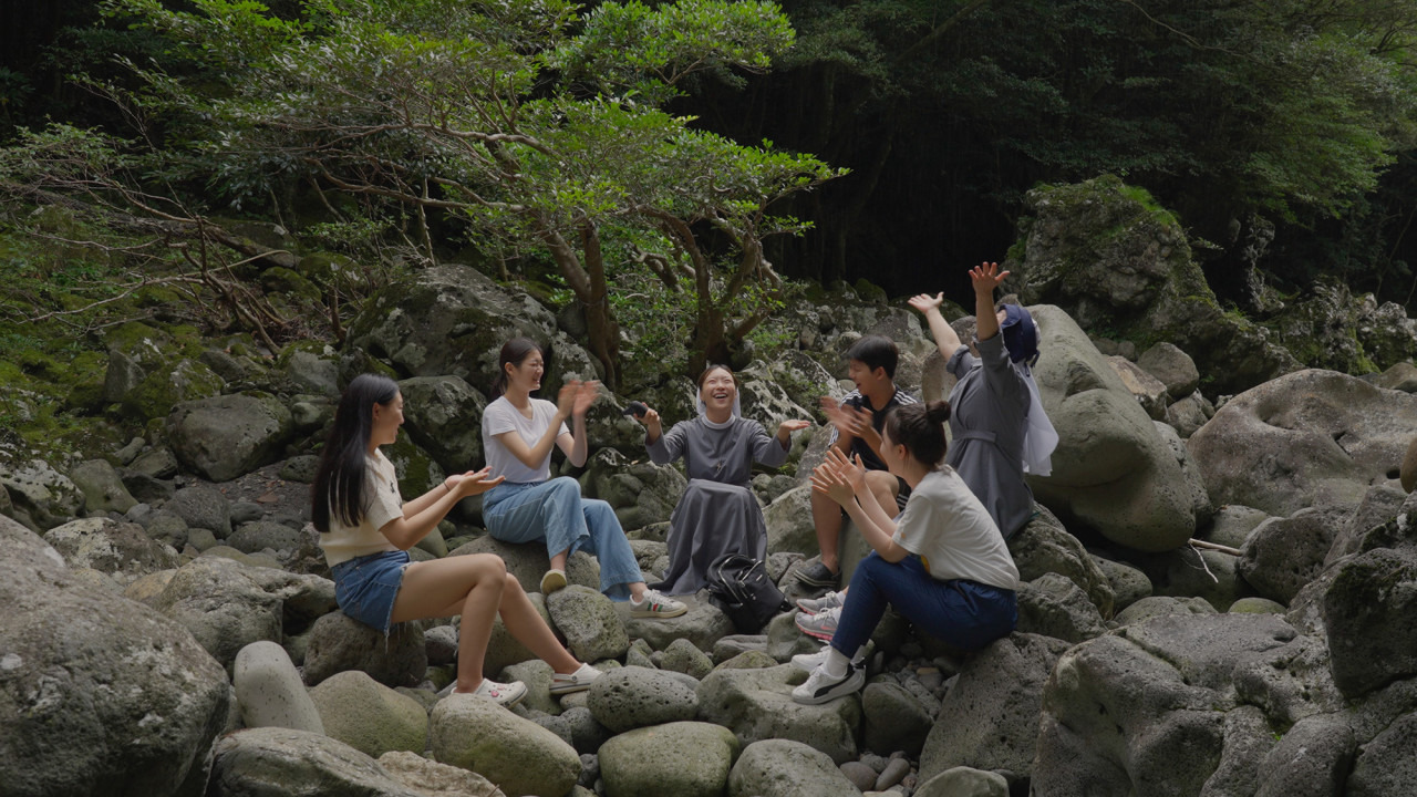 쿠키: 〈샤인〉은 제가 근래 본 영화 중에 러닝타임이 가장 긴 영화였는데 그 과정에서 인물들과 제주도의 자연경관들을 조급해하지 않고 담아내는 모습들이 긴장 없이 편하게 느껴졌어요. 문종택 배우가 딸을 그리워하는 아버지 역할로 나오시는데 그 부분이 세월호 참사와 연관되면서 마음이 아팠고, 영화의 전체적인 주제는 돌봄에 맞닿아있다고 느껴졌어요. 수녀님들과 친구들이 주인공을 항상 돌봐주면서 혼자였던 사람이 다시 밖으로 나가게 되는 계기가 되고, 어느 날엔 갑자기 찾아온 어린 여자애를 돌봐주는 상황도 생기는데 그러면서 다시 활기를 되찾는 모습들을 보면서 돌봄의 선순환 같다는 생각을 했어요. 가끔 사람은 돌봄을 주고 또 돌봄을 받으면서 살아가야 충만해지는구나,라는 생각이 들 때가 있어요. 이 영화에 장선 배우가 출연하는데 서울국제여성영화제 트레일러에선 이전 작품인 〈겨울나기〉나 단편 작품들이 다양하게 배치되어 있었어요. 짧은 장면들을 보는데 인상에 깊게 남아서 앞으로 더 자주 스크린에서 볼 수 있을 것 같다는 생각이 들었어요.