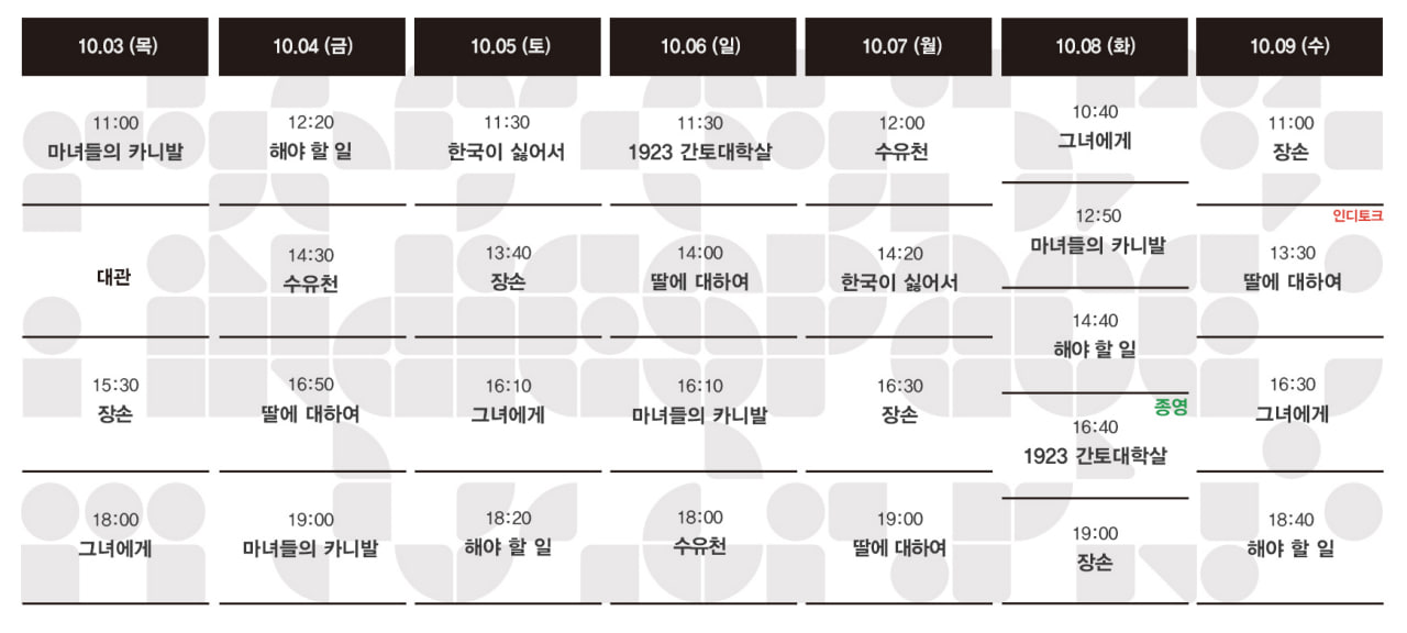 | 10.10-10.16 상영시간표 (0) | 2024.10.02 |