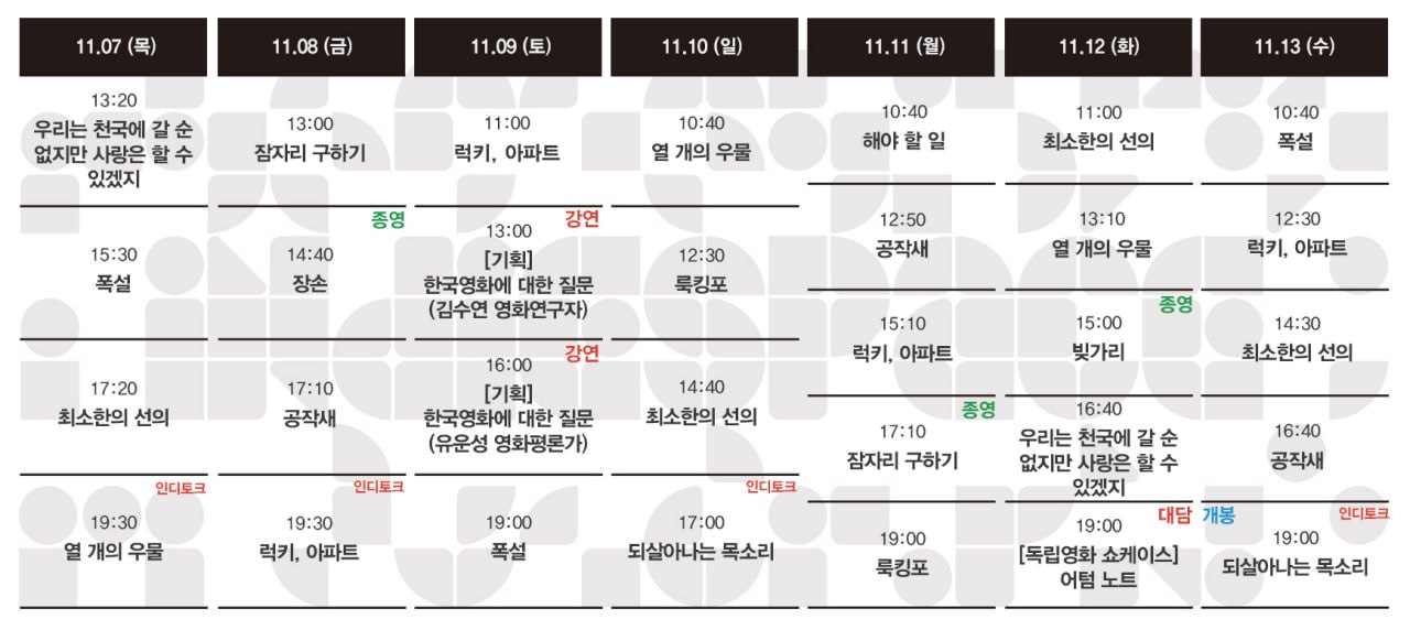 11.14-11.20 상영시간표 (0) | 2024.11.08 |