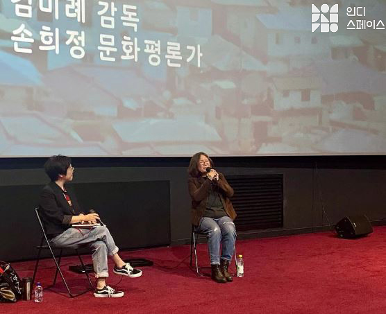 손희정 문화평론가 (이하 손희정): 안녕하세요. 김미례 감독님 모시고 시작하겠습니다. 많은 분이 흥미롭게 보셨고 여러 가지 질문들이 많으실 것 같습니다. 오늘 개봉 후 처음으로 관객 앞에 서시는 만큼 소회가 남다르실 것 같습니다. 소감을 나눠주시면 좋겠습니다.