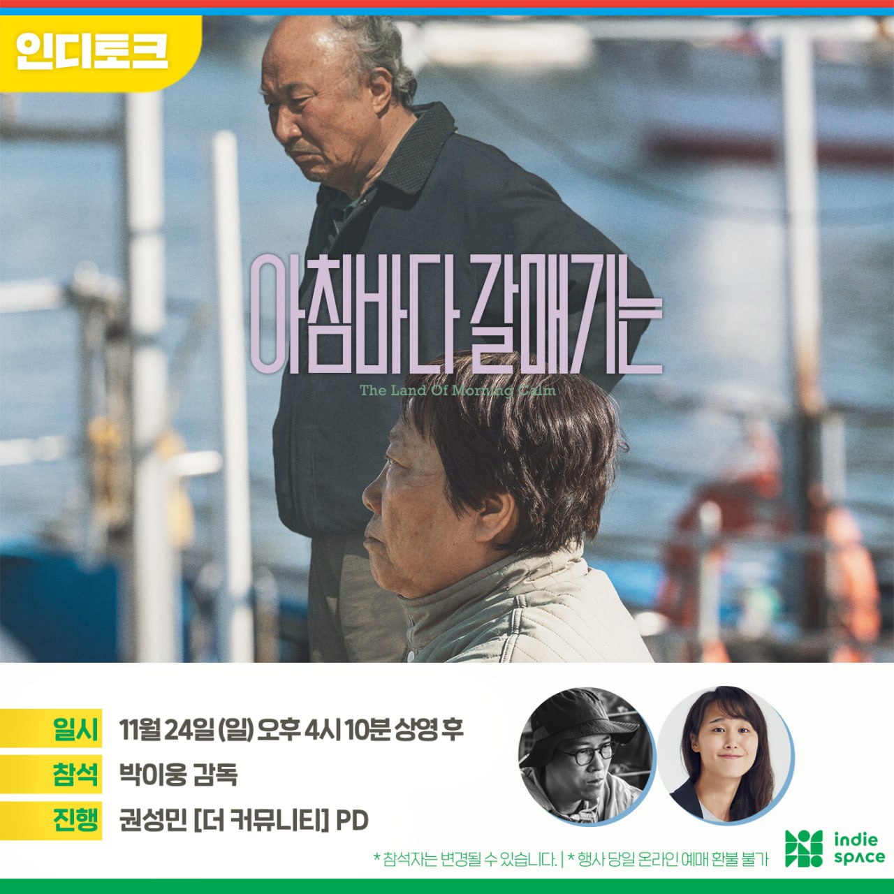 * <불도저에 탄 소녀> 당일 관람 티켓 소지 시 <아침바다 갈매기는> 인디토크 참석이 가능합니다. (<아침바다 갈매기는> 상영 후 입장)