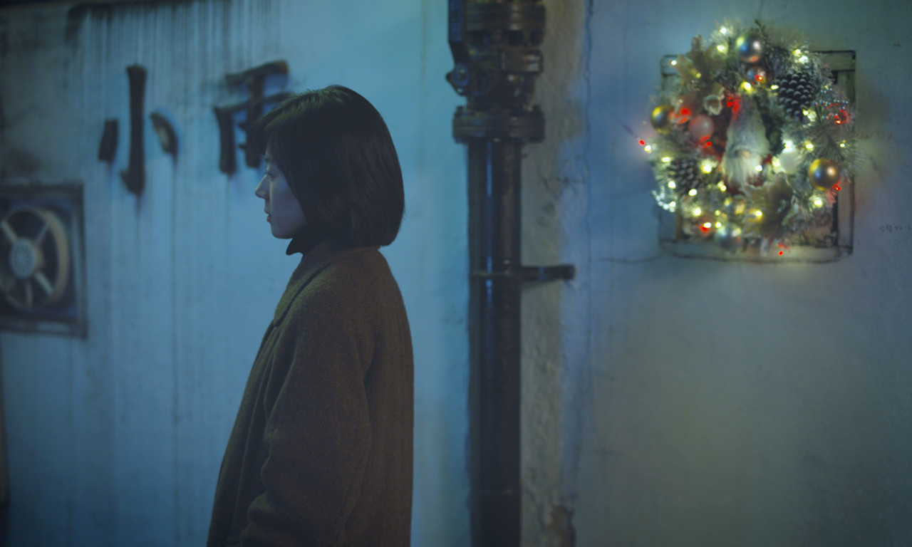 김태양: 제가 불교 신자는 아니거든요. 저는 종교를 생각할 때 조금 학문처럼 받아들이는 게 있어요. 그래서 불교를 특히 좋아하는 것 때문에 불교를 선택한 건 아니지만, 그 교리나 순환의 개념은 불교적인 사상이잖아요. 영화의 두 번째 파트에 보면 부처님 오신 날 연등들이 달려 있잖아요. 그래서 말씀하신 것과 같이 불교적인 부분들이 이 영화가 말하고자 하는 부분과 맥이 같다고 저는 생각했고. 그렇기 때문에 첫 번째 파트에서 하성국 배우가 12시에서 12시라고 말하듯이, 그것도 순환의 얘기잖아요. 이명하 배우가 세 번째 파트에서 첫 등장하는 게, 법성계라는 미로를 돌고 있는 거예요. 그게 입구로 들어가면 입구로 나올 수밖에 없어요. 출구와 입구가 같은 구조를 가진 불교의 법성계라는 개념이고, 그 개념을 형상화 해놓은 미로인데요. 저는 그걸 염두에 두고 로케이션을 섭외했었고, 그런 부분들이 영화 곳곳에 녹아들어가길 바랐습니다.