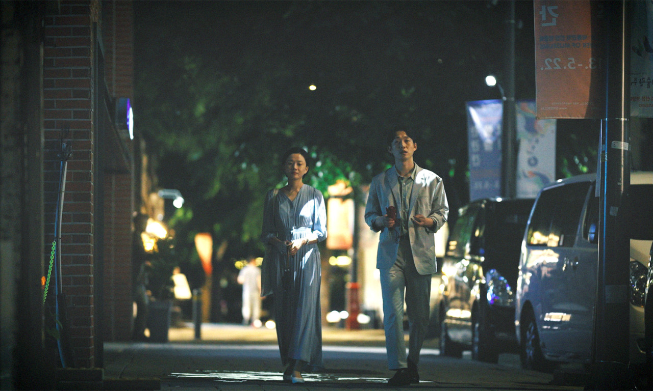 곽명동: 운전하는 연기가 이렇게 쉽지 않습니다, 여러분. 감독님께 여쭤보도록 하겠습니다. 저는 이 영화 2부 음악이 특히 좋았고요. 1막, 3막 전부 좋았지만. 저는 감독님께서 의도하신 게 영화와 현실의 경계를 무너뜨리려고 한 게 아닌가. 그러니까 1954년도 〈미망인〉이라는 극중의 영화가 미망인의 이야기를 다룬 것 같은데, 이 모더레이터가 그 영화 얘기하면서 여러분들도 여러분들의 이야기를 하시고, 저 1954년도의 배우들도 이 근처 서울극장을 걸었던 분들이라고 말하고 나서 극장 문을 나와 팀장님을 만나는 거잖아요. 그러니까 본인의 이야기를 이제 하게 되는 것이고요. 감독님께서 1954년도의 영화와 2020년대의 서울을 이어지게 하려고 했다는 느낌을 받아서 한번 여쭤보도록 하겠습니다.