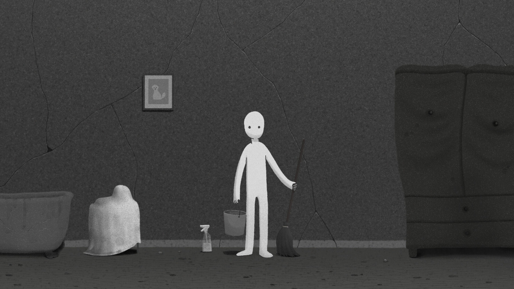 주인공은 오래된 자신의 집을 청소하기 시작한다.