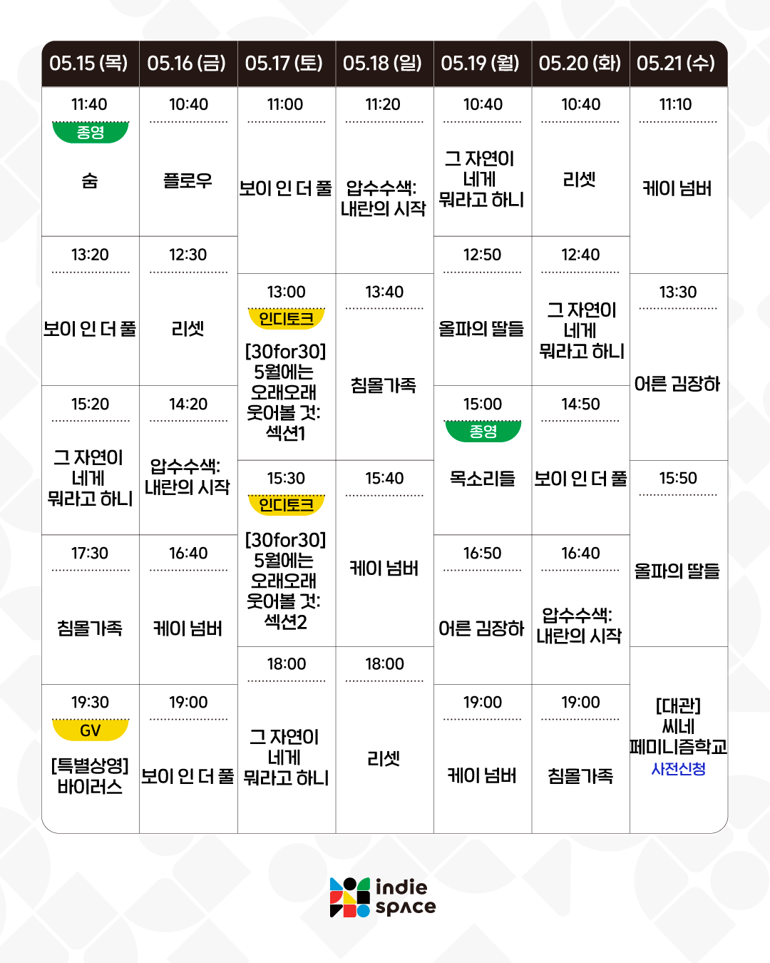 | 05.29-06.04 상영시간표 (0) | 2025.05.23 |