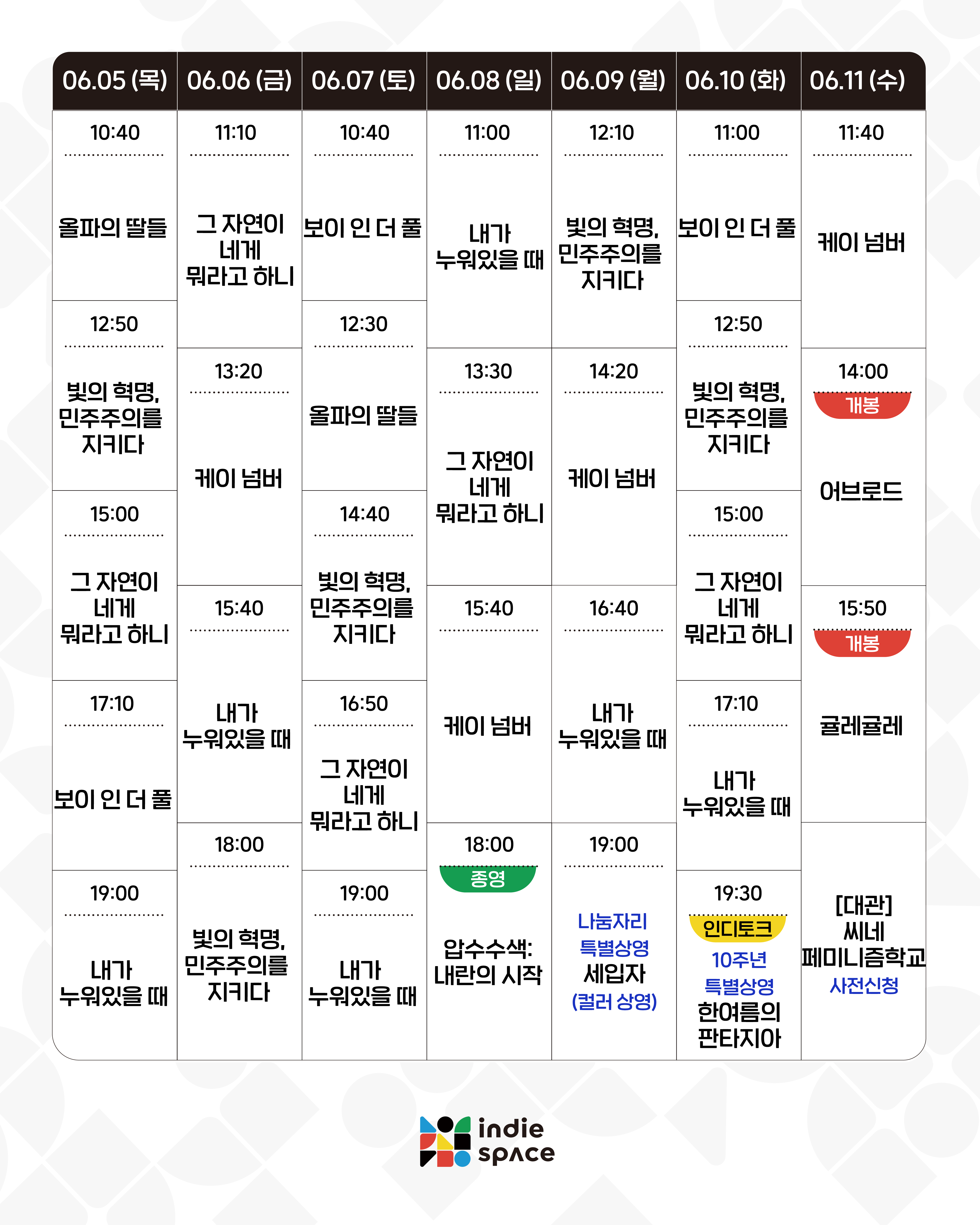 | 06.19-06.25 상영시간표 (0) | 2025.06.13 |