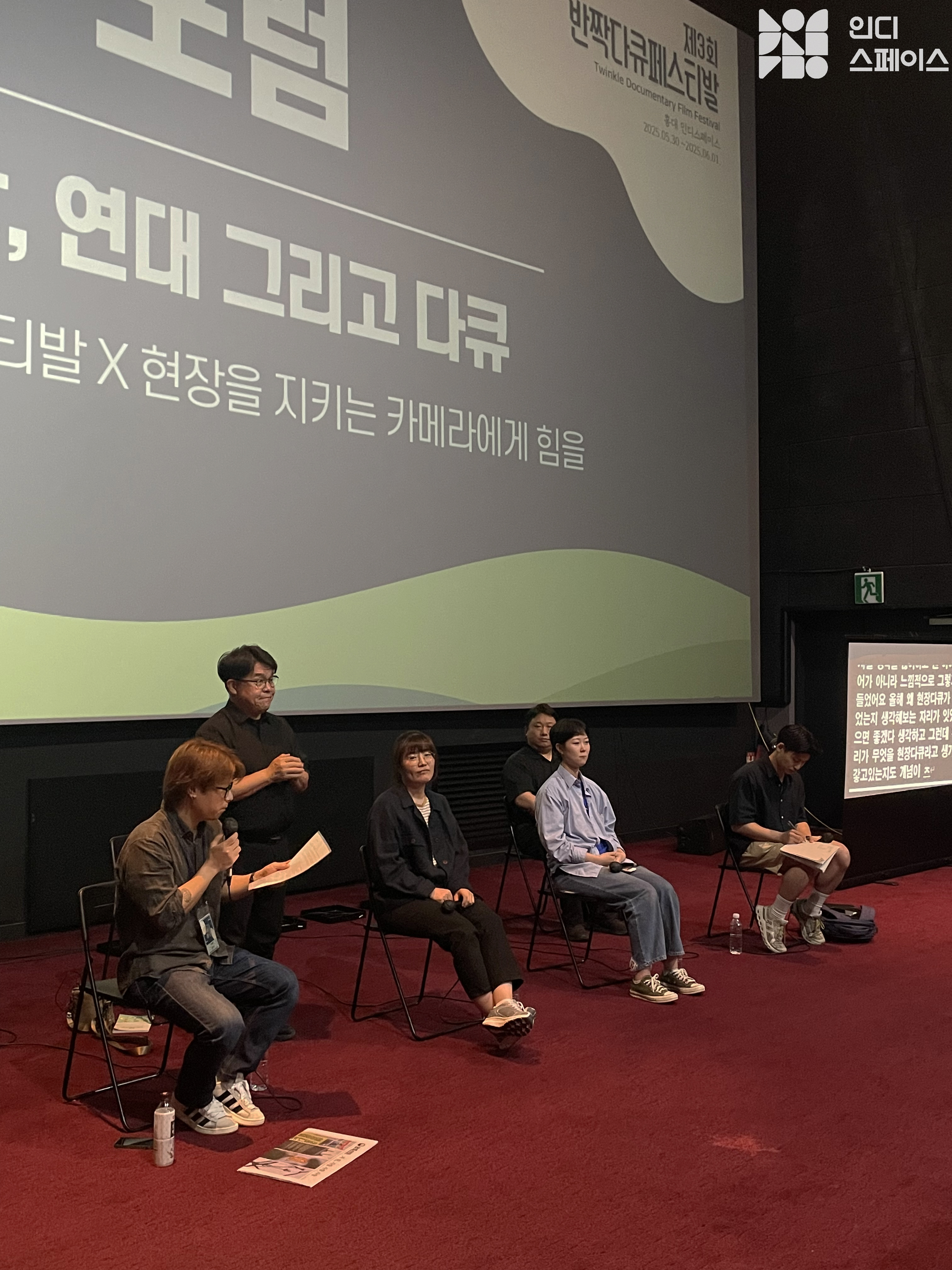 지난한 현장을 찍기 위해 더 지난한 과정을 견디는 사람들의 이야기를 들으며 반짝다큐페스티발의 3일간의 여정을 돌아보게 되었다. 그럼에도 불구하고 영화였던 이유는 영화라는 매체가 그 이야기를 필요로 하는 사람을 그 시간과 공간에 함께 붙들어두는 힘을 지녔기 때문인 것 같다. 그리고 당사자성이 필수적이지 않은 개인 혹은 단체의 이야기를 담아낼 수 있는 매체 역시, 여전히 영화라는 생각이 들었다.