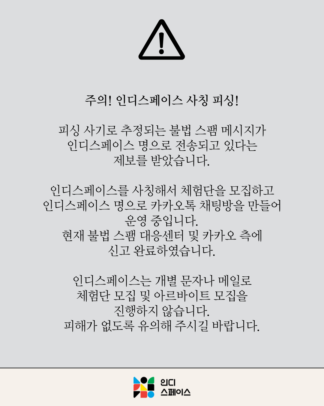 ⚠️ 주의! 인디스페이스 사칭 피싱!