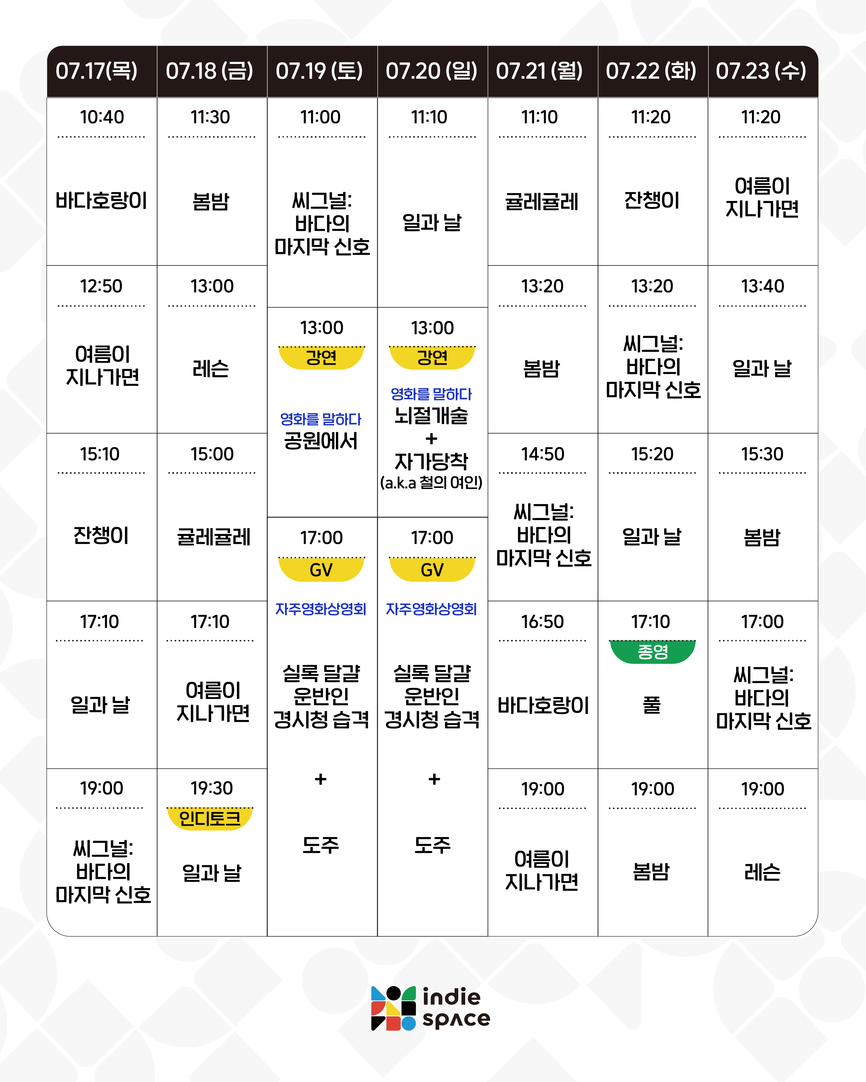 | 07.10-07.16 상영시간표 (0) | 2025.07.07 |