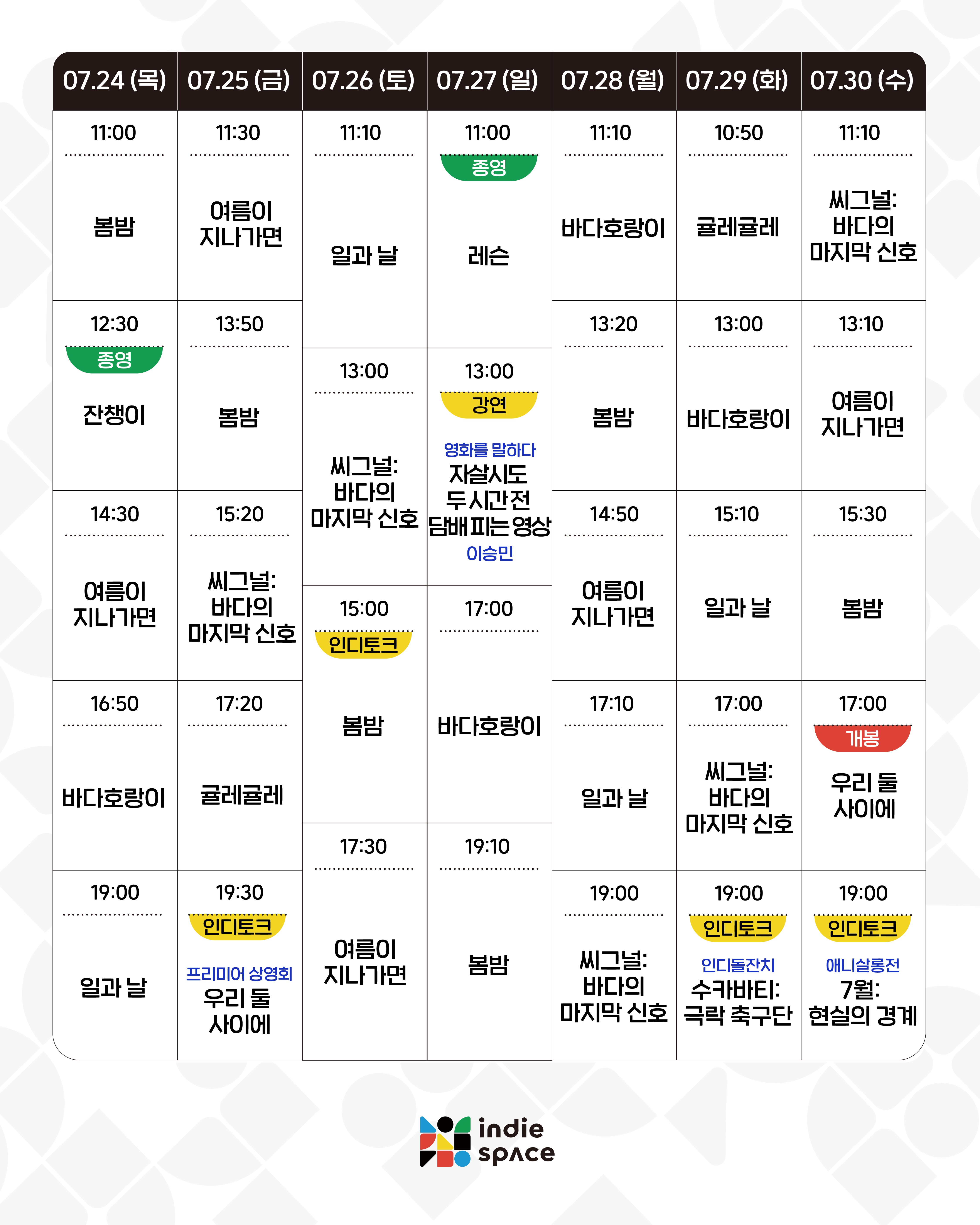 | 07.10-07.16 상영시간표 (0) | 2025.07.07 |