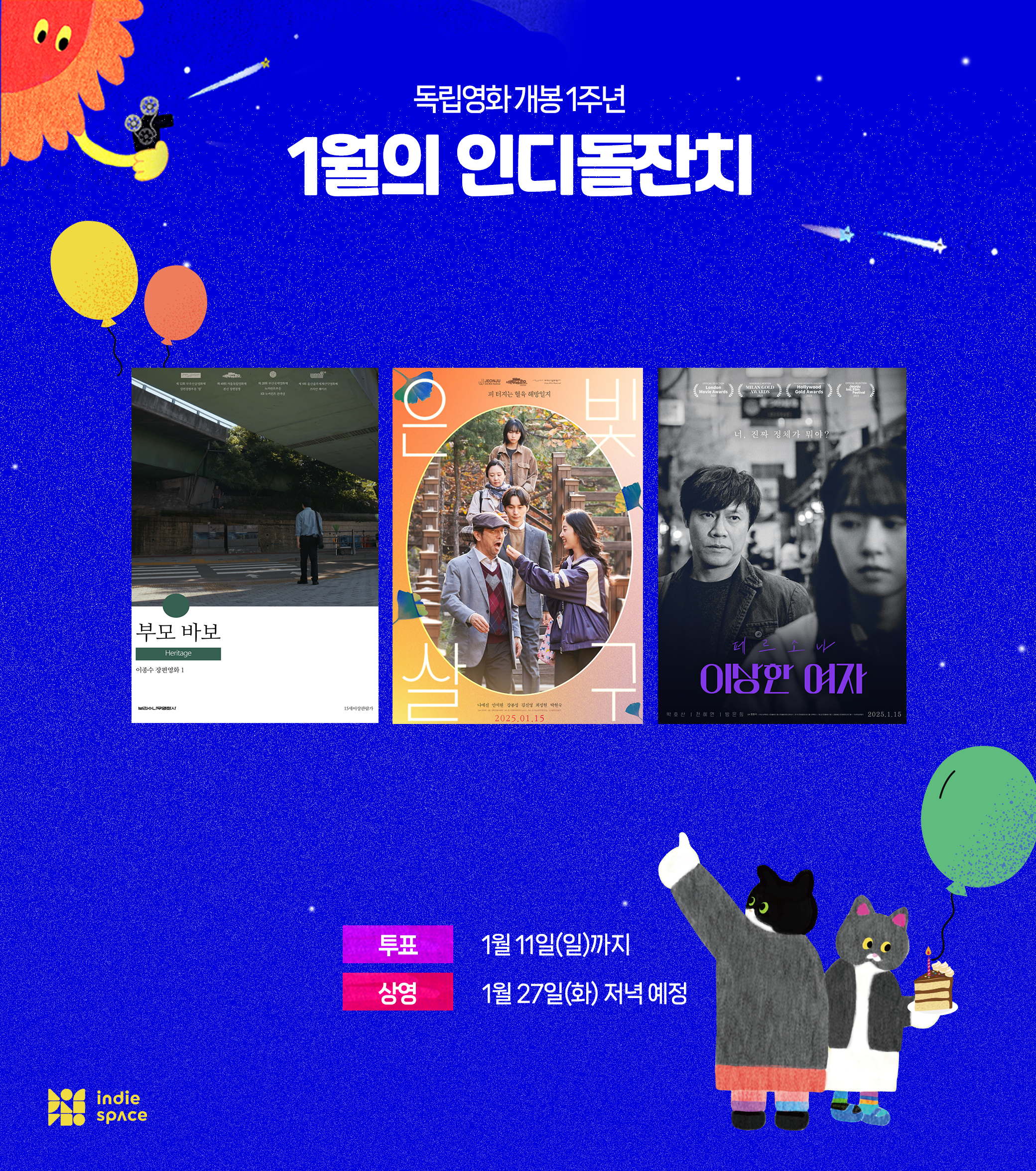 | [인디돌잔치] 2026년 2월 상영작을 선정해주세요 (0) | 2026.01.30 |