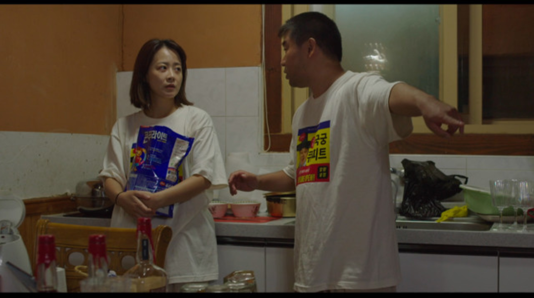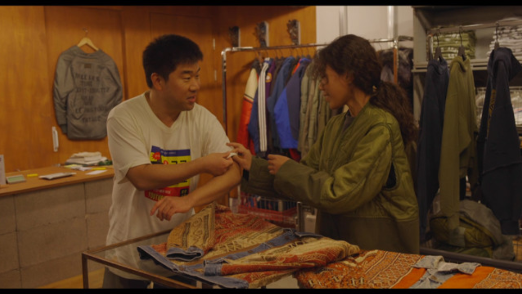 그리고 옷가게 사장님은 정말 기적이에요. 김오키 감독님이 아시는 빈티지 옷가게였는데, 원래는 사장님이 출연하시기로 했어요. 그런데 대사를 드렸더니 못 하겠다고 하셔서 직원분이 대신해 주신 거거든요. 그래서 “면접 볼 때 뭐 물어보세요?”라고 여쭤봤더니 보통 본인이 입고 있는 옷을 설명해 보라고 하신대요. 그래서 원래는 짧게만 찍고 넘어가려고 했는데 충길 배우가 계속 설명을 한 거죠.