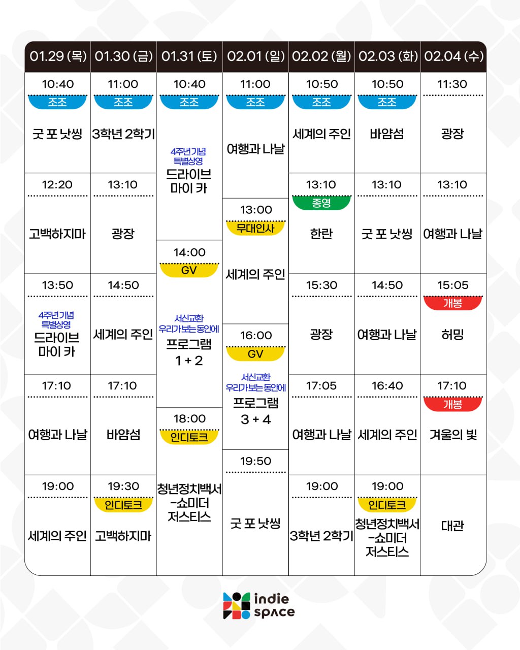 | 01.22-01.28 상영시간표 (0) | 2026.01.16 |