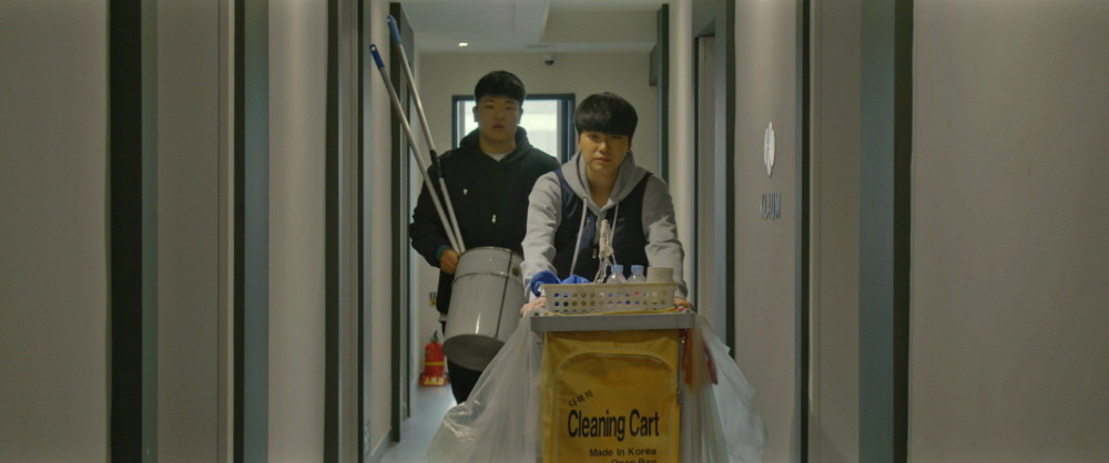 조현서: 엔딩 신(scene) 정도 말고는 변한 게 없고, 편집자님이 오히려 있는 컷 안에서 없는 컷들을 만들어내려고 되게 많이 노력하셨어요. 가장 큰 변화라고 하면, 처음에 재은과 다빈이 옥상에서 교복으로 갈아입는 장면이 원래 클로즈업도 몇 컷 정도 있고 타이트한 투샷 같은 것들도 찍어놓은 게 있지만, 그런 부분들을 덜어내고 풀 샷 하나로 갔어요. 음악 작업과 음향 작업은, 사실 음향에 대해서는, 너무 톤이 정적이니까 없는 소리들을 앰비언스(ambience)로 많이 채울 것인지, 아니면 그냥 이런 톤으로 받아들이고 계속 갈 것인지를 초반에 논의했는데, 억지로 채우지는 말자는 얘기만 나눴었고 음악 작업이 생각보다 오래 걸렸어요. 곡은 15곡 정도 작곡했어요. 근데 곡이라는 게 들어가면 들어갈수록 너무 많고 부담스러운 느낌이 들고, 그전까지는 제가 단편 작업들을 했을 때는 (곡을) 많이 사용해 본 적이 없었거든요. 어떤 고집 때문이 아니라, 음악이라는 것이 돈이 들어가고 제가 직접 할 능력은 없으니 이런 경험을 처음 해봤던 거죠. 근데 음악 감독님이 제가 하는 고민 하나하나에 반응을 많이 해 주시는 분이어서 오히려 작업의 진도가 좀 더디게 나갔을 수도 있겠다는 생각이 들어요. 서로 배려해 주다 보니까 얘기할 것도 많았고요. 음악 감독님이 작곡해 오신 것 중에서 줄여보고, 또 그 안에서 변주도 해보는 식으로 작업했습니다.