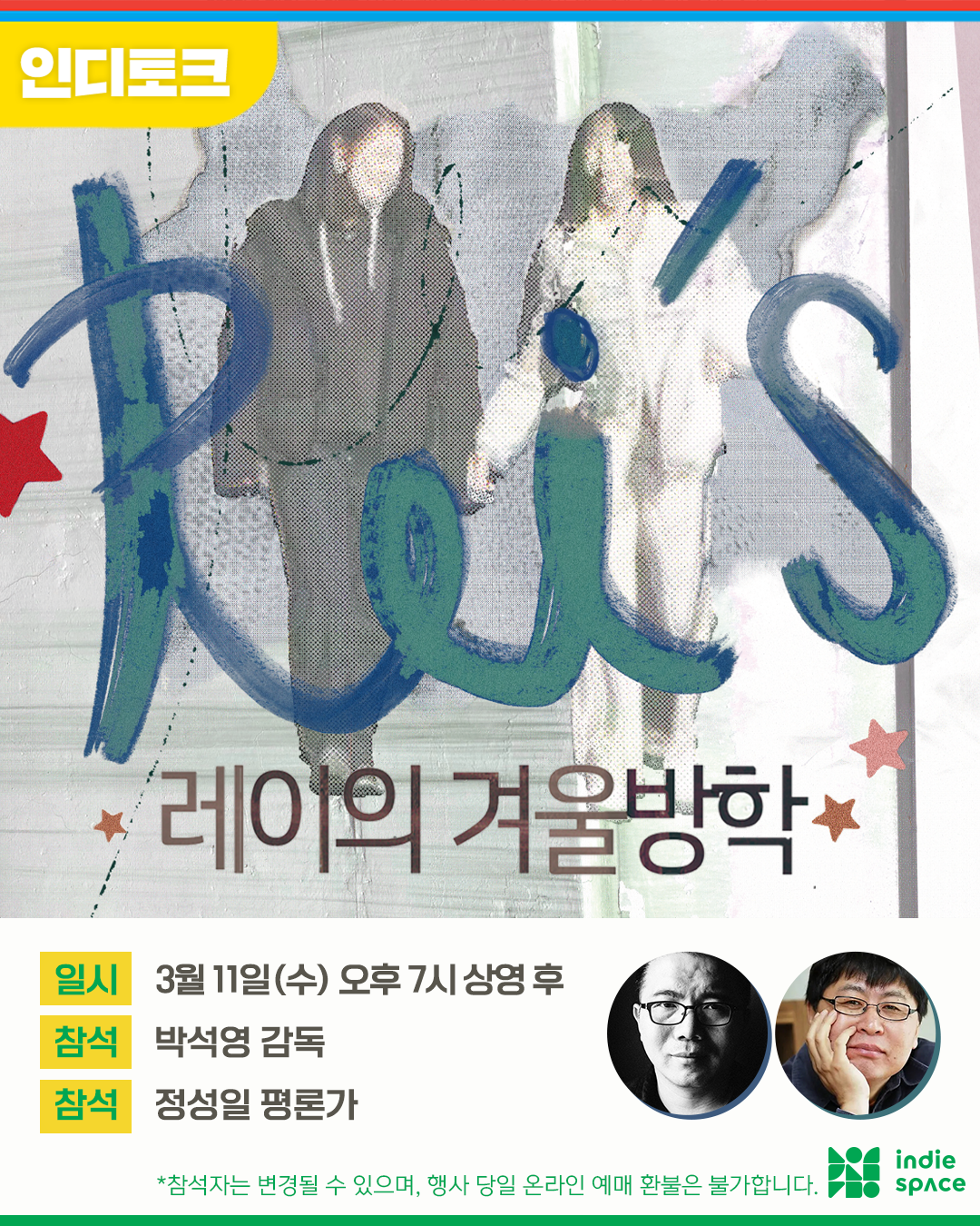 𖣠 네이버 등 포털 사이트에서 상영일정이 검색되지 않습니다. 인디스페이스 티켓은 [타이니 티켓]에서 예매할 수 있습니다.