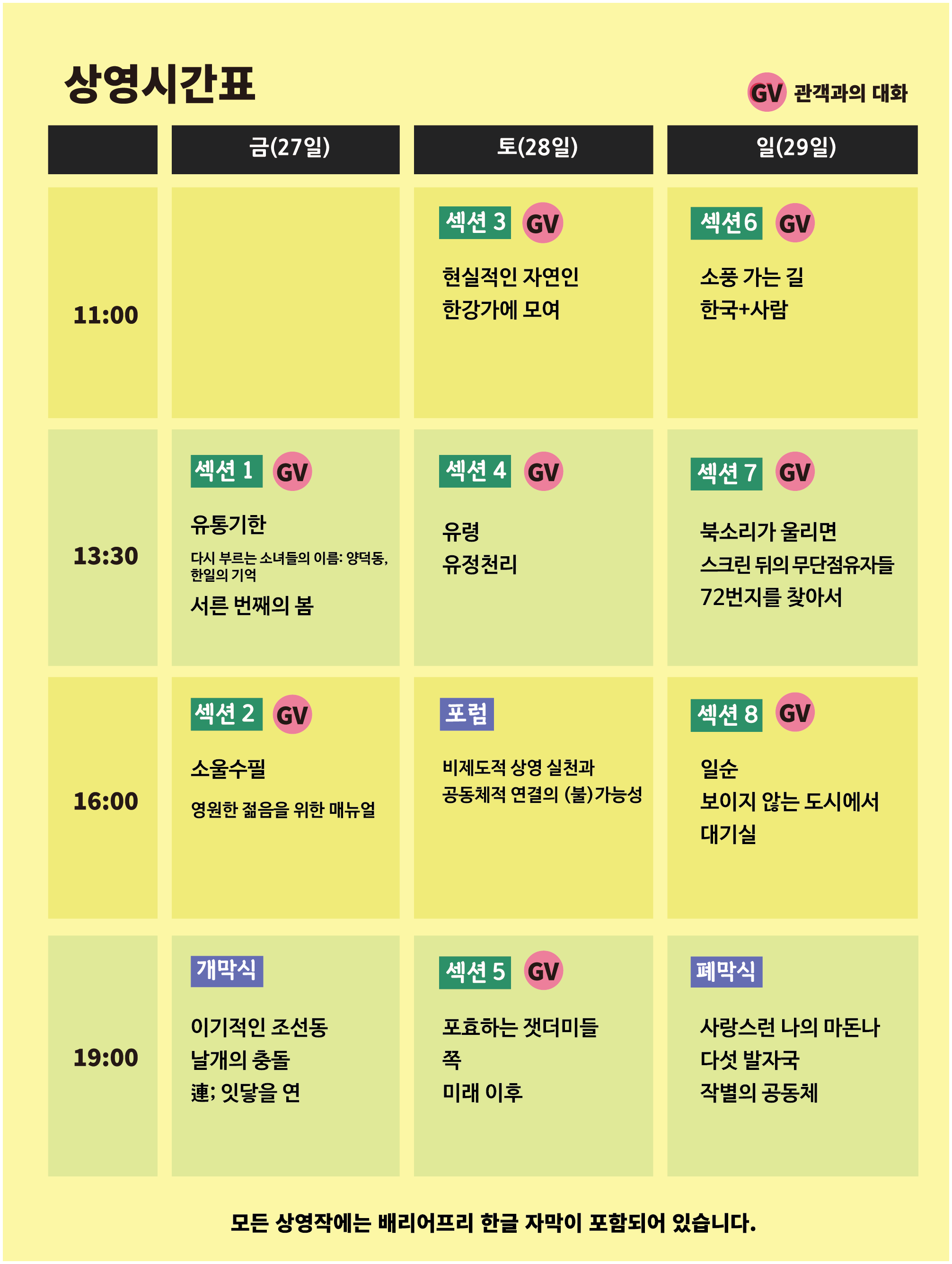 * 모든 상영과 부대 행사에는 청각장애인을 위한 자막 해설 및 현장수어통역이 배치됩니다.