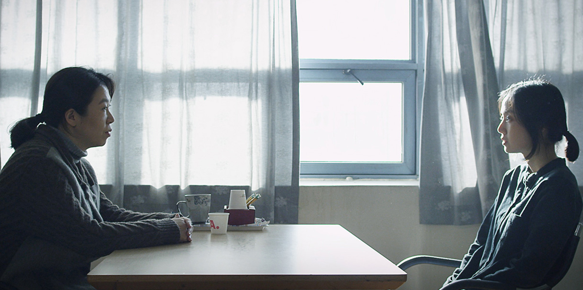 이 모든 일이 자동차 두 대가 부딪혔던 이차로에서 시작되어 그곳으로 수렴하는 것 같지만, 나는 왠지 다른 장면을 기점으로 영화가 압축된다고 느껴진다. 테이블을 사이에 두고 앉아 있는 희주와 영남의 장면이다. 희주가 자리에 앉기 전에 커튼을 옆으로 조금 걷어낸 덕분에 희주의 윤곽은 밝고, 맞은편에 앉은 영남은 어둡다. 그 순간 희주가 빛을 닮은 사람이라면 영남은 철을 닮은 사람이라는 생각이 든다. 이 연상은 조명으로 만들어진 미장센을 그저 제목에 대입해보는 것만은 아니라고 말하고 싶다. 김시은 배우가 빚어낸 희주의 엷은 얼굴과 염혜란 배우가 만들어낸 영남의 굳센 얼굴은 극장을 나서도 휘발되지 않은 채 뇌리에 남는다.