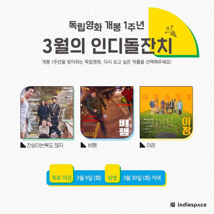 | [인디돌잔치] 2021년 2월 상영작을 선정해주세요 (0) | 2021.02.03 |