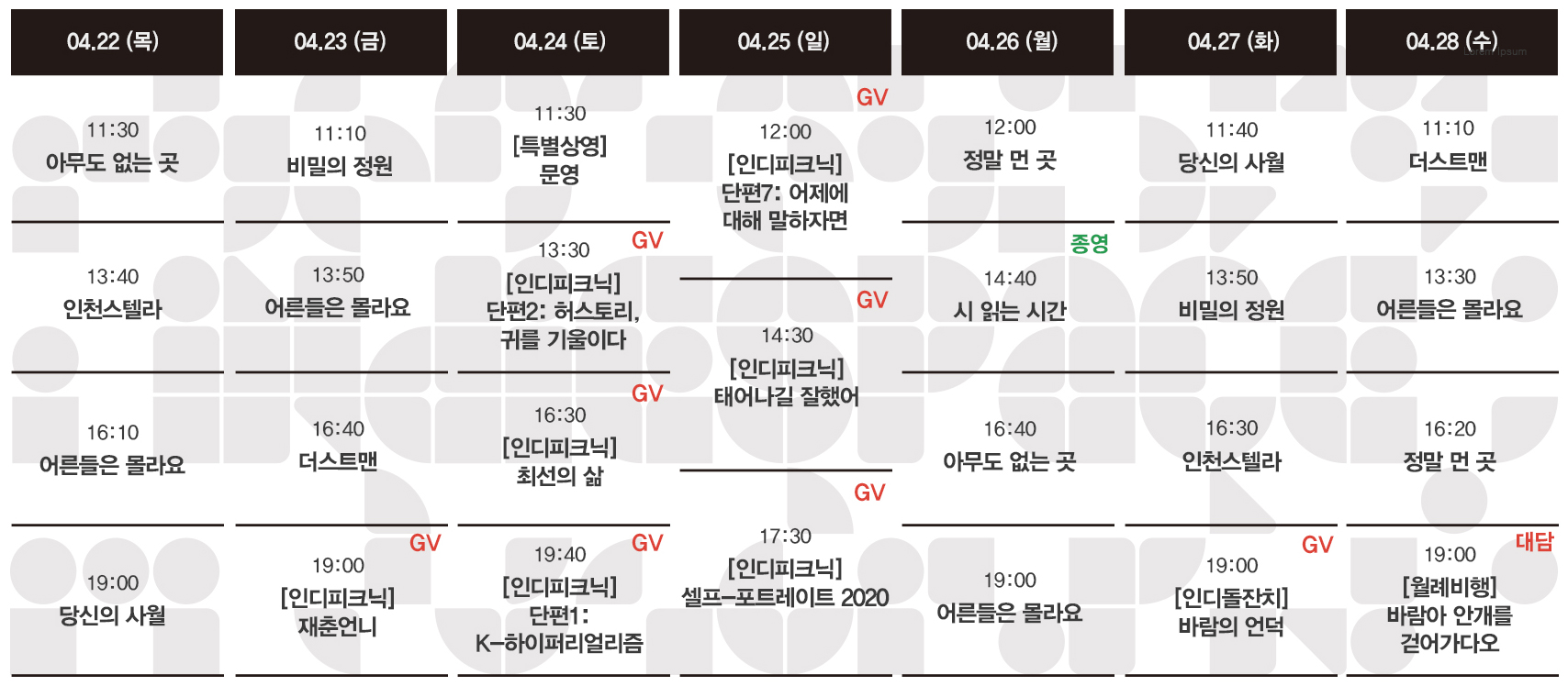 Now Playing/상영시간표 [04.22-04.28 상영시간표] 어른들은 몰라요 / 비밀의 정원 / 더스트맨 / 당신의 사월 / 아무도 없는 곳 / 인천스텔라 / 시 읽는 시간 / 정말 먼 곳 by indiespace_은 2021. 4. 15. 예매하기 예스24 네이버 작품정보 어른들은 몰라요 비밀의 정원 더스트맨 당신의 사월 아무도 없는 곳 인천스텔라 시 읽는 시간 정말 먼 곳 공유하기 게시글 관리 인디스페이스 indiespace 저작자표시 (새창열림) 'Now Playing > 상영시간표' 카테고리의 다른 글 [05.06-05.12 상영시간표] 학교 가는 길 / 좋은 빛, 좋은 공기 / 어른들은 몰라요 / 비밀의 정원 / 더스트맨 / 당신의 사월 / 아무도 없는 곳 / 정말 먼 곳 (0) 2021.04.30 [04.29-05.05 상영시간표] 학교 가는 길 / 좋은 빛, 좋은 공기 / 어른들은 몰라요 / 비밀의 정원 / 더스트맨 / 당신의 사월 / 아무도 없는 곳 / 인천스텔라 / 정말 먼 곳 (0) 2021.04.22 [04.15-04.21 상영시간표] 어른들은 몰라요 / 비밀의 정원 / 더스트맨 / 당신의 사월 / 아무도 없는 곳 / 인천스텔라 / 시 읽는 시간 / 정말 먼 곳 / 파이터 (0) 2021.04.09 [04.08-04.14 상영시간표] 비밀의 정원 / 더스트맨 / 당신의 사월 / 아무도 없는 곳 / 인천스텔라 / 시 읽는 시간 / 정말 먼 곳 / 파이터 (0) 2021.04.01 [04.01-04.07 상영시간표] 당신의 사월 / 아무도 없는 곳 / 인천스텔라 / 시 읽는 시간 / 정말 먼 곳 / 파이터 / 밤빛 / 빛과 철 (0) 2021.03.26 관련글 [05.06-05.12 상영시간표] 학교 가는 길 / 좋은 빛, 좋은 공기 / 어른들은 몰라요 / 비밀의 정원 / 더스트맨 / 당신의 사월 / 아무도 없는 곳 / 정말 먼 곳 [04.29-05.05 상영시간표] 학교 가는 길 / 좋은 빛, 좋은 공기 / 어른들은 몰라요 / 비밀의 정원 / 더스트맨 / 당신의 사월 / 아무도 없는 곳 / 인천스텔라 / 정말 먼 곳 [04.15-04.21 상영시간표] 어른들은 몰라요 / 비밀의 정원 / 더스트맨 / 당신의 사월 / 아무도 없는 곳 / 인천스텔라 / 시 읽는 시간 / 정말 먼 곳 / 파이터 [04.08-04.14 상영시간표] 비밀의 정원 / 더스트맨 / 당신의 사월 / 아무도 없는 곳 / 인천스텔라 / 시 읽는 시간 / 정말 먼 곳 / 파이터 댓글