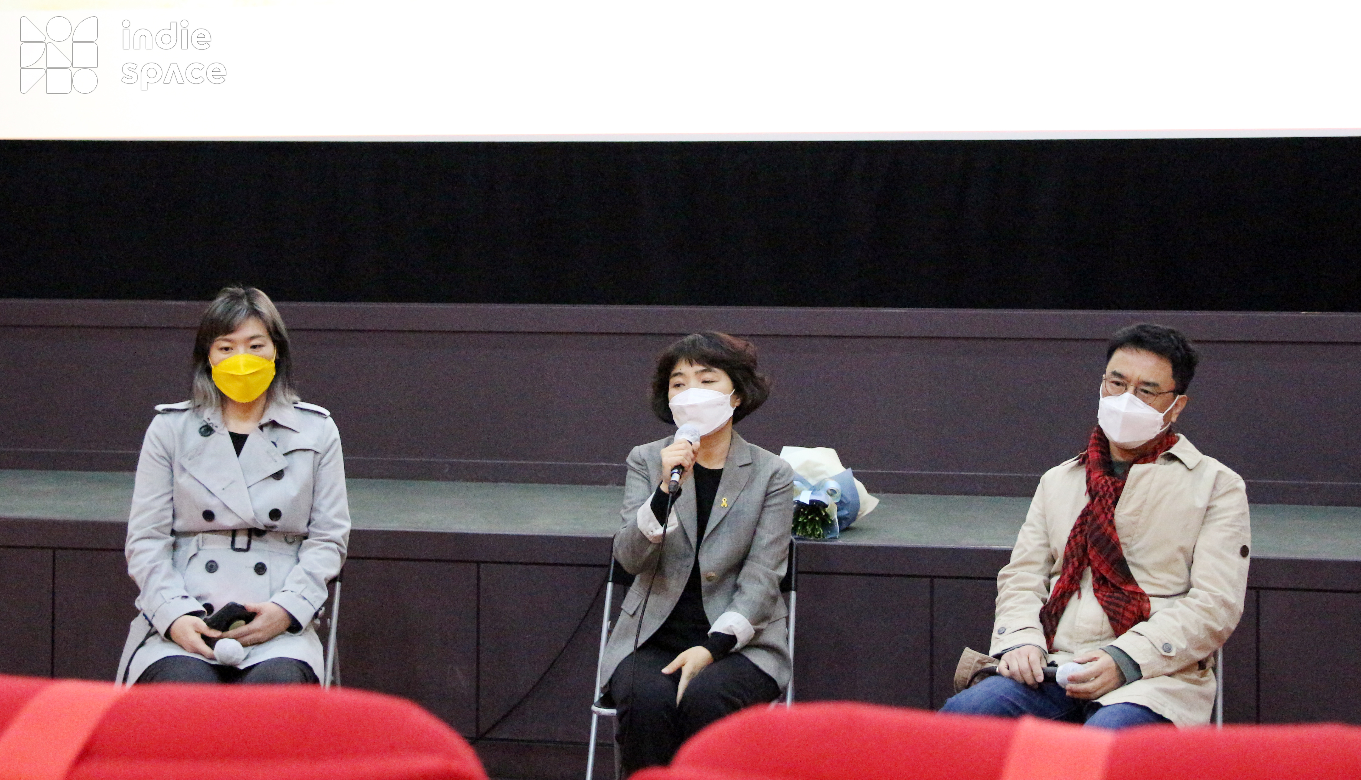전규찬 교수(이하 전규찬): 주현숙 감독은 한국예술종합학교 전문사에서 공부할 때부터 이후 단편작, 그리고 이 작품까지 보면서 참 뿌듯하고 고맙다는 생각이 들었고요. 저희가 함께하던 학생, 작가들이 책임감 있게 작업해 주셔서 고맙다는 생각 하면서 봤습니다.