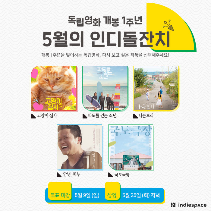 | [인디돌잔치] 2021년 6월 상영작을 선정해주세요 (0) | 2021.06.09 |