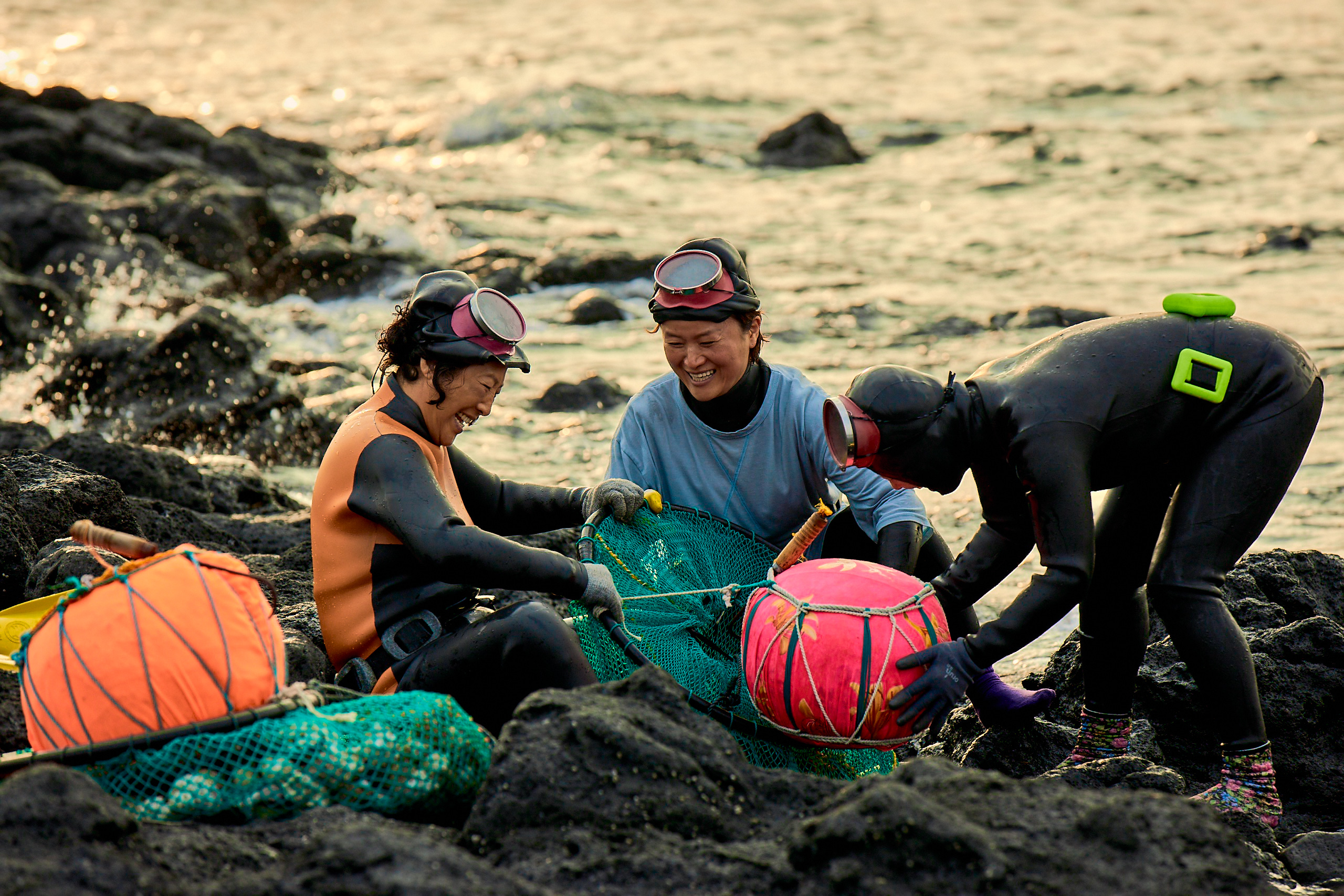 소준문: (웃음) 제가 또 주문을 드렸죠. 절대 카페가 없는 동네였으면 좋겠다. 처음에는 그런 고민들을 많이 했어요. 지금 제주도는 관광지로서 많은 부분들이 변하고 있는데, 변하는 모습과 아직 변하지 않은 것들을 함께 담는 것이 좋을까 하는 고민이요. 그런데 저는 기본적으로 현재 변한 제주보다는 예스러운 제주의 모습이 담기면 좋겠다는 생각이 더 강했던 것 같아요. 지역적인 아름다움을 담고 싶다는 생각이요. 저희가 촬영을 진행했던 동네는 카페도 없고, 식당 몇 개만 있는 조용한 마을이었어요. 그리고 해녀 작업장이 바다와 붙어있는 곳이 굉장히 드물거든요. 그래서 그 동네에서 작업을 진행했죠. 진옥의 집도 실제로 60대 해녀 할머니가 살고 계시는 집이에요. 에피소드가 하나 있는데요. 사실 집주인 할머니 분이 저희가 영화 작업에 참고한 다큐멘터리에 출연하셨던 분이에요. 저희는 전혀 모르는 상태에서 예쁜 집을 찾아서 주인 분을 만나러 갔는데 다큐멘터리에서 뵌 분이 계신 거예요. 그래서 깜짝 놀랐죠. 운명이란 게 진짜 있구나 하는 생각을 했어요. 한 번 뵙고 싶다고 생각했는데 너무 반가웠죠.