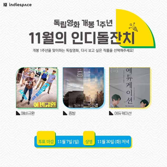| [인디돌잔치] 2021년 10월 상영작을 선정해주세요 (0) | 2021.10.05 |