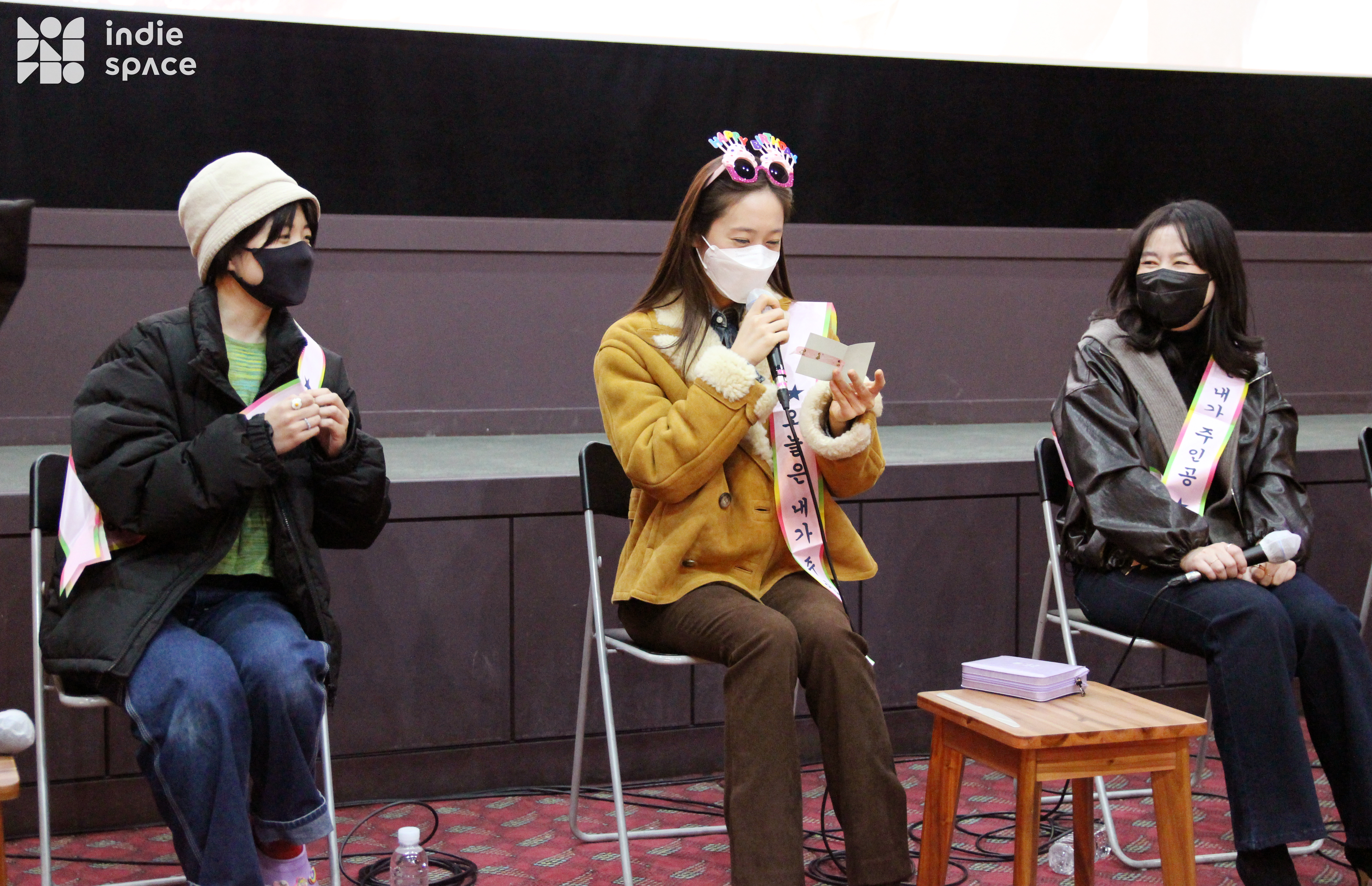 장성란 저널리스트(이하 장성란): 안녕하세요. 〈애비규환〉 인디돌잔치 진행을 맡은 장성란입니다. 돌잔치를 열게 되어 정말 기쁘네요. 감독님부터 한 분 씩 관객 여러분을 만나는 소감과 함께 이 영화를 떠올리면 생각나는 웃음소리를 얘기해주시면서 인사 부탁드리겠습니다.