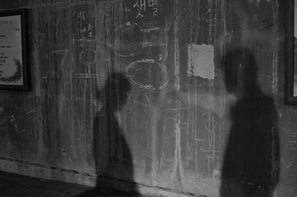 겨우 두 번 마주친, 이름조차 모르는 낯선 이에게 한밤의 산책을 제안하는 지훈. 그리고 조용히 응하는 은영. 너무나 자연스럽게 펼쳐지는 장면에 우리 역시 자연스럽게 따라간다. 그들은 함께 걷기 시작한다. 인적 끊긴 명동 거리와 돌담길, 종로의 영화관 거리 등. 서울의 익숙한 공간들이지만 어둠이 깔린 그곳은 새로운 모습으로 탈바꿈하여 비춰진다. 더욱이 흑백 연출을 통해 밤은 더 어둡고 짙고 깊게 담겨 있다. 한밤은 지훈과 은영만을 위해 존재하는 것 같다. 시간이 멈춰버린 것 같은 환상이 밀려온다. 둘은 한밤의 리듬에 몸을 맡긴 채 걸음에 걸음을 더한다. 낯선 사람이기에 털어놓을 수 있는 내면의 목소리들이 밤의 정적은 채우고, 어둠 속 펼쳐지는 그림자 역할극은 현실의 고통을 재연한다. 그곳에서 피어나는 유희적인 그림자 놀이. 그리고 그들 앞에 등장한 거대한 코끼리 그림자는 환상 속 고통을 위무한다.