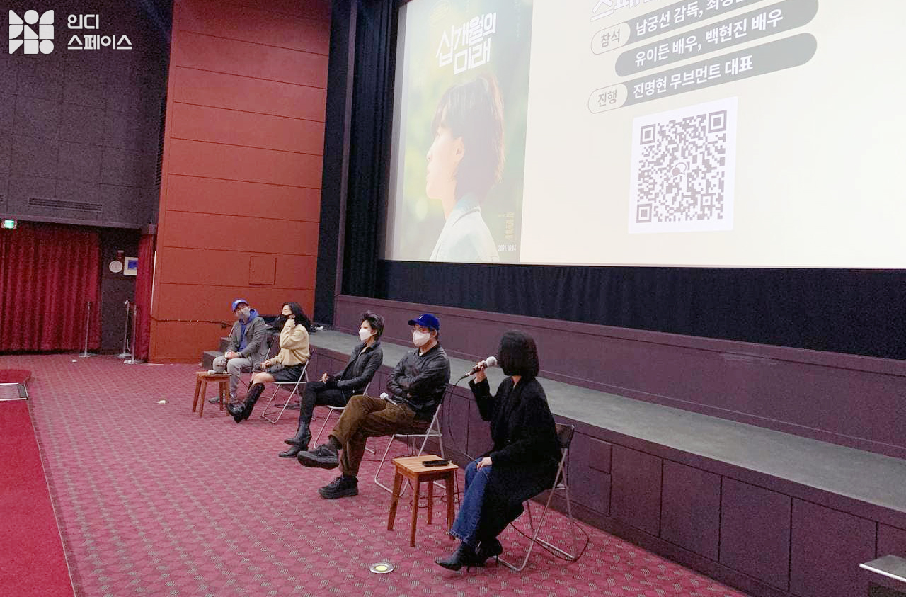 남궁선: 갑자기 또 허하네요. 아직 상영이 남아있다고 하니까 바이바이는 하지 않을게요. 이렇게 와 주셔서 정말 감사하고요. 저희 영화가 〈십개월의 미래〉 속 카오스처럼 자라서 이렇게 세상에 나와서 지금 이 시간을 함께 보내고 있다는 게 행복하네요. 인디스페이스도 곧 이 자리를 떠나게 되잖아요. 여러모로 감동적인 자리에 함께 해 주셔서 감사합니다.