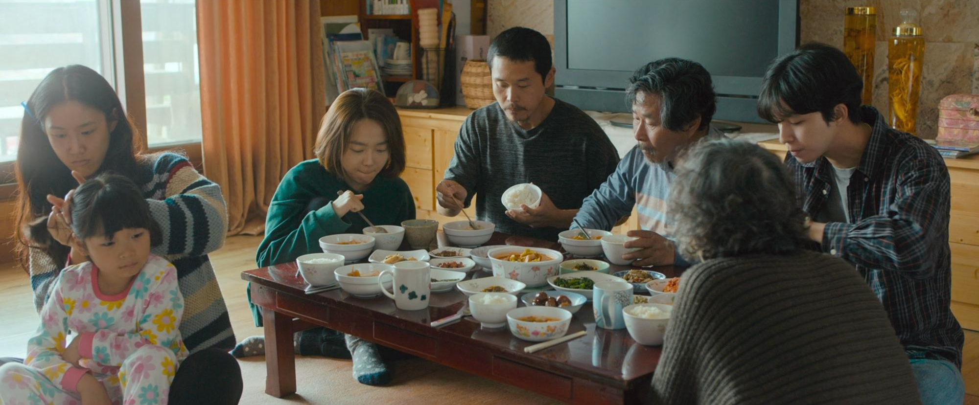 홍경: 당연히 설이와 진우 앞에서는 직접적으로 표현하지 못했겠지만 현민은 설이라는 존재에 대해 여러 생각들이 있었을 것 같아요. 설이에 대한 걱정도 있었을 거고, 진우와의 관계에 대한 고민도 있었을 거고. 그래서 되게 조심스럽게 설이 얘기를 꺼냈던 게 불현듯 떠오르는데. 제가 처음 진우를 만나서 포옹을 하고 집에 와서 식사를 하잖아요. 저는 그때 어떤 낯선 곳이라는 느낌을 받지 않았던 것 같아요. 가족 구성원 전체가 알고 지냈던 사람들처럼 다가갈 수 있는 편안함이 있지 않았을까. 그런 느낌을 받았던 기억이 나요.
