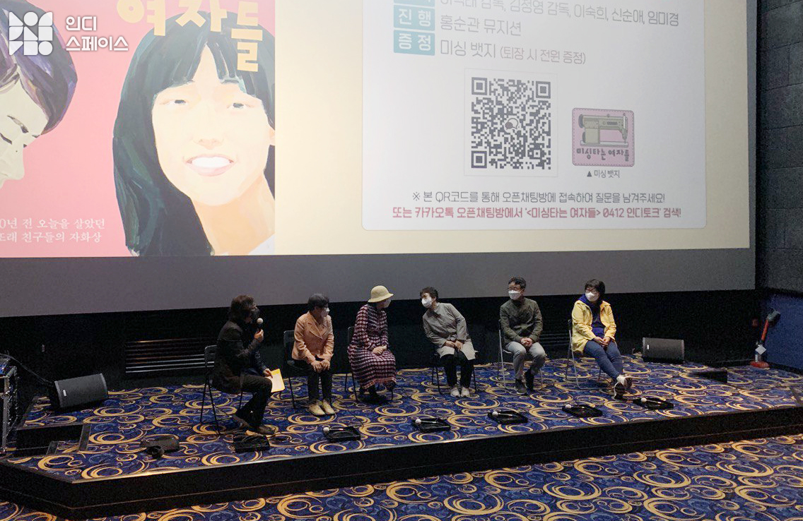 그러면 다섯 분을 모시겠습니다. 이혁래 감독님, 김정영 감독님 그리고 주인공이죠. 영화에 나오셨던 이숙희 선생님, 신순애 선생님, 임미경 선생님. 다섯 분 모시겠습니다. 여러분 뜨거운 박수로 맞이해주세요. 아, 이숙희 선생님은 영화를 보고 계셨군요. 관객의 한 명으로서 감동이에요. 일단 감독님께 첫 장면과 마지막 장면을 만들어주셔서 진심으로 고맙다는 말씀을 드리고 싶습니다. 11살 때부터 혼자 영화를 보기 시작해서 지금까지 꽤 많은 영화를 봤는데, 이렇게 첫 장면과 마지막 장면이 진하게 남는 영화는 참 드뭅니다. 그 첫 장면에 미싱 장면이 나오고…. 연이 궁금해서요, 그 연은 실제로 띄운 건가요?
