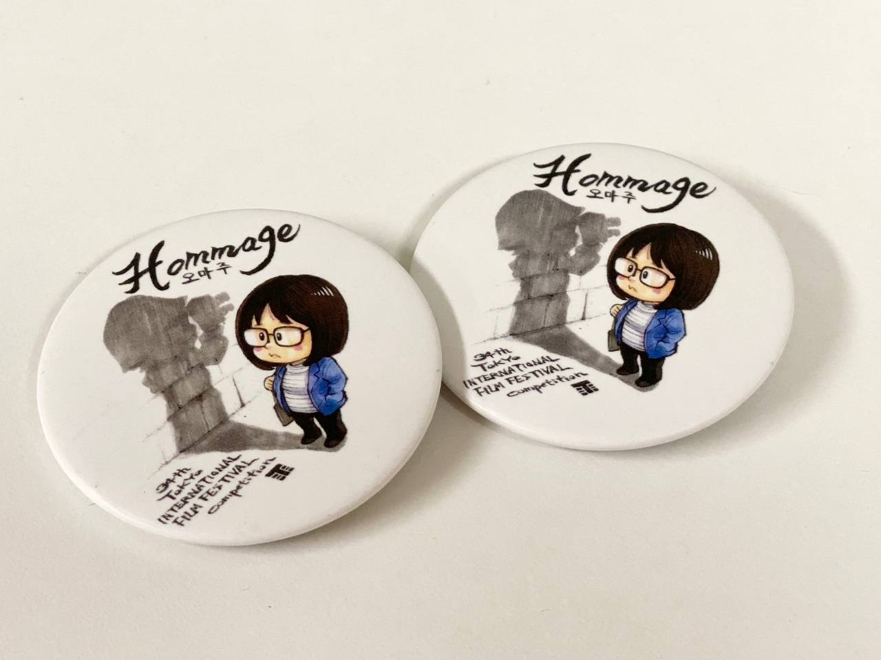 <오마주>를 관람하시면 일러스트 캔배지를 드립니다.