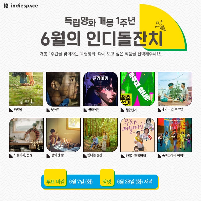 [인디돌잔치] 2022년 7월 상영작을 선정해주세요 (0) | 2022.06.30 |