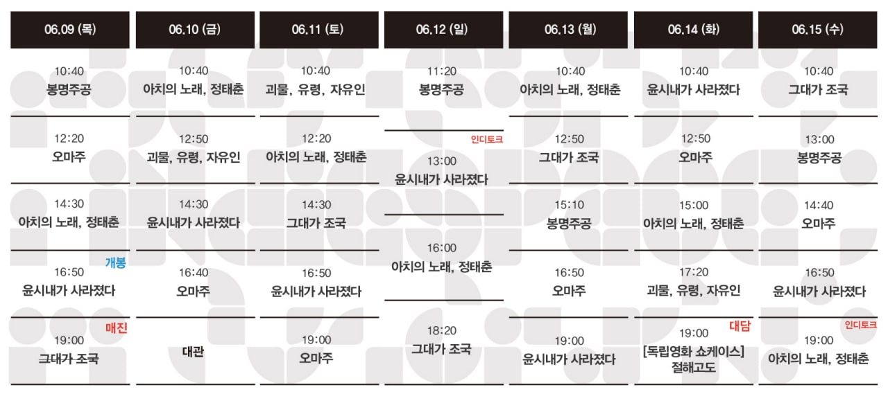 Now Playing/상영시간표 [06.09-06.15 상영시간표] 윤시내가 사라졌다 / 괴물, 유령, 자유인 / 오마주 / 그대가 조국 / 봉명주공 / 아치의 노래, 정태춘 by indiespace_은 2022. 6. 3. [클릭] 공유하기 게시글 관리 인디스페이스 indiespace 저작자표시 (새창열림) 'Now Playing > 상영시간표' 카테고리의 다른 글 [06.23-06.29 상영시간표] 모어 / 니얼굴 / 우스운 게 딱! 좋아! / 경아의 딸 / 윤시내가 사라졌다 / 오마주 / 그대가 조국 / 아치의 노래, 정태춘 (0) 2022.06.17 [06.16-06.22 상영시간표] 경아의 딸 / 윤시내가 사라졌다 / 괴물, 유령, 자유인 / 오마주 / 그대가 조국 / 봉명주공 / 아치의 노래, 정태춘 (0) 2022.06.09 [06.02-06.08 상영시간표] 괴물, 유령, 자유인 / 오마주 / 그대가 조국 / 봉명주공 / 아치의 노래, 정태춘 / 쏴!쏴!쏴!쏴!탕 (0) 2022.05.27 [05.26-06.01 상영시간표] 오마주 / 그대가 조국 / 봉명주공 / 아치의 노래, 정태춘 / 쏴!쏴!쏴!쏴!탕 / 평평남녀 / 소설가의 영화 / 헝거 / 태어나길 잘했어 (0) 2022.05.20 [05.19-05.25 상영시간표] 봉명주공 / 아치의 노래, 정태춘 / 쏴!쏴!쏴!쏴!탕 / 평평남녀 / 소설가의 영화 / 헝거 / 위대한 계약: 파주, 책, 도시 / 쓰리: 아직 끝나지 않았다 / 태어나길 잘했어 / 복지.. (0) 2022.05.12 관련글 [06.23-06.29 상영시간표] 모어 / 니얼굴 / 우스운 게 딱! 좋아! / 경아의 딸 / 윤시내가 사라졌다 / 오마주 / 그대가 조국 / 아치의 노래, 정태춘 [06.16-06.22 상영시간표] 경아의 딸 / 윤시내가 사라졌다 / 괴물, 유령, 자유인 / 오마주 / 그대가 조국 / 봉명주공 / 아치의 노래, 정태춘 [06.02-06.08 상영시간표] 괴물, 유령, 자유인 / 오마주 / 그대가 조국 / 봉명주공 / 아치의 노래, 정태춘 / 쏴!쏴!쏴!쏴!탕 [05.26-06.01 상영시간표] 오마주 / 그대가 조국 / 봉명주공 / 아치의 노래, 정태춘 / 쏴!쏴!쏴!쏴!탕 / 평평남녀 / 소설가의 영화 / 헝거 / 태어나길 잘했어 댓글