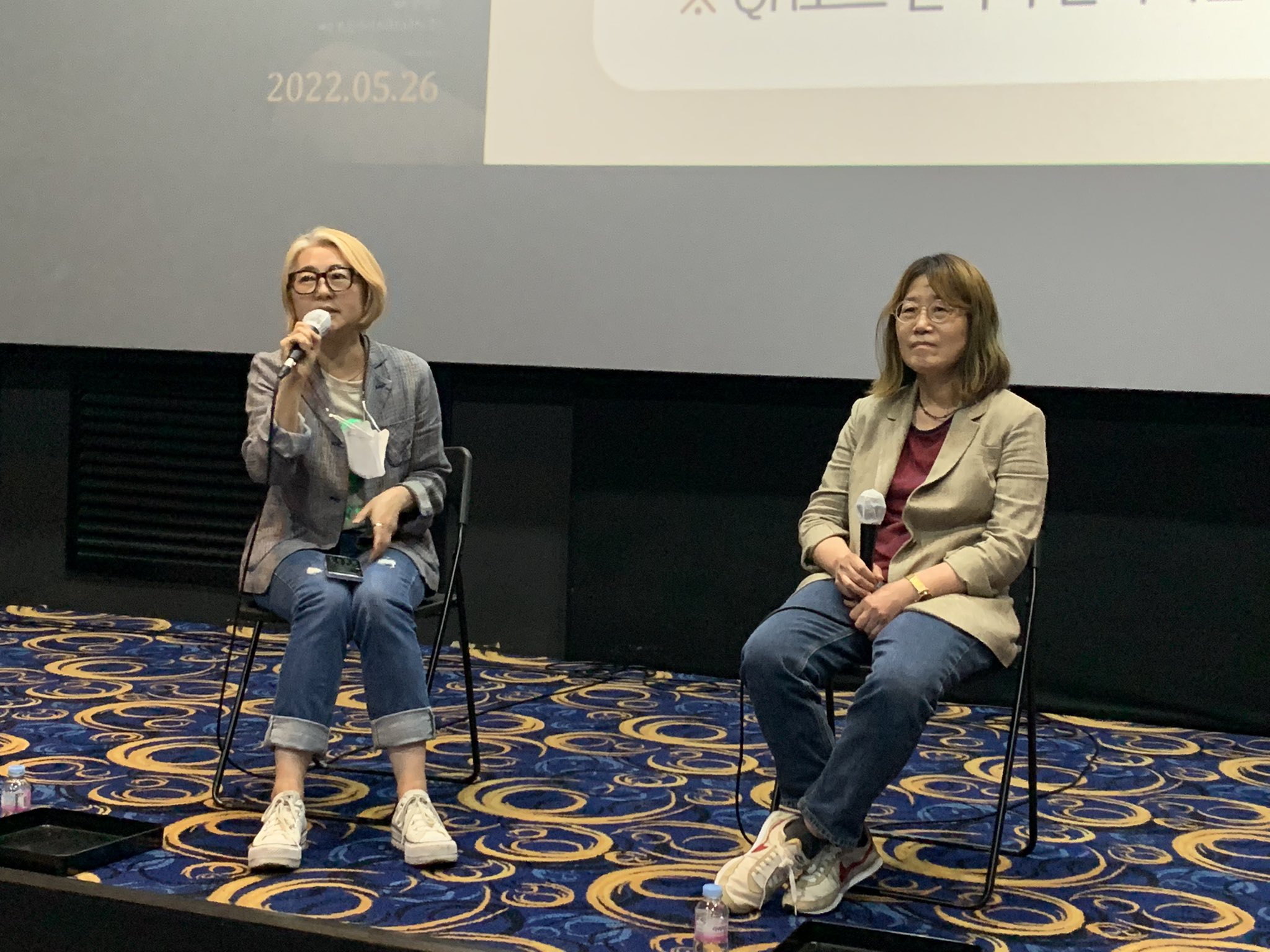 부지영 감독(이하 부지영): 안녕하세요, 저는 오늘 GV 진행을 하게 된 부지영이라고 합니다. 옆에는 〈오마주〉를 연출한 신수원 감독님 나오셨습니다.