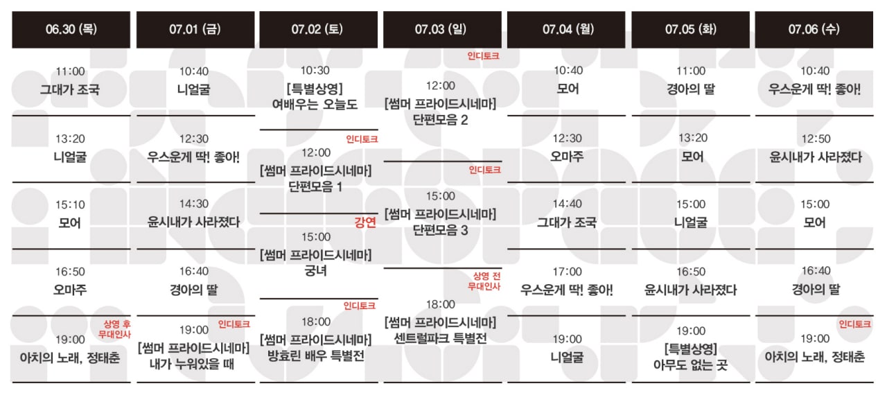 Now Playing/상영시간표 [06.30-07.06 상영시간표] 모어 / 니얼굴 / 우스운 게 딱! 좋아! / 경아의 딸 / 윤시내가 사라졌다 / 오마주 / 그대가 조국 / 아치의 노래, 정태춘 by indiespace_은 2022. 6. 24. [클릭] 공유하기 게시글 관리 인디스페이스 indiespace 저작자표시 (새창열림) 'Now Playing > 상영시간표' 카테고리의 다른 글 [07.14-07.20 상영시간표] 모어 / 니얼굴 / 우스운 게 딱! 좋아! / 경아의 딸 / 윤시내가 사라졌다 / 오마주 / 그대가 조국 / 아치의 노래, 정태춘 (0) 2022.07.07 [07.07-07.13 상영시간표] 모어 / 니얼굴 / 우스운 게 딱! 좋아! / 경아의 딸 / 윤시내가 사라졌다 / 오마주 / 그대가 조국 / 아치의 노래, 정태춘 (0) 2022.07.01 [06.23-06.29 상영시간표] 모어 / 니얼굴 / 우스운 게 딱! 좋아! / 경아의 딸 / 윤시내가 사라졌다 / 오마주 / 그대가 조국 / 아치의 노래, 정태춘 (0) 2022.06.17 [06.16-06.22 상영시간표] 경아의 딸 / 윤시내가 사라졌다 / 괴물, 유령, 자유인 / 오마주 / 그대가 조국 / 봉명주공 / 아치의 노래, 정태춘 (0) 2022.06.09 [06.09-06.15 상영시간표] 윤시내가 사라졌다 / 괴물, 유령, 자유인 / 오마주 / 그대가 조국 / 봉명주공 / 아치의 노래, 정태춘 (0) 2022.06.03 관련글 [07.14-07.20 상영시간표] 모어 / 니얼굴 / 우스운 게 딱! 좋아! / 경아의 딸 / 윤시내가 사라졌다 / 오마주 / 그대가 조국 / 아치의 노래, 정태춘 [07.07-07.13 상영시간표] 모어 / 니얼굴 / 우스운 게 딱! 좋아! / 경아의 딸 / 윤시내가 사라졌다 / 오마주 / 그대가 조국 / 아치의 노래, 정태춘 [06.23-06.29 상영시간표] 모어 / 니얼굴 / 우스운 게 딱! 좋아! / 경아의 딸 / 윤시내가 사라졌다 / 오마주 / 그대가 조국 / 아치의 노래, 정태춘 [06.16-06.22 상영시간표] 경아의 딸 / 윤시내가 사라졌다 / 괴물, 유령, 자유인 / 오마주 / 그대가 조국 / 봉명주공 / 아치의 노래, 정태춘 댓글