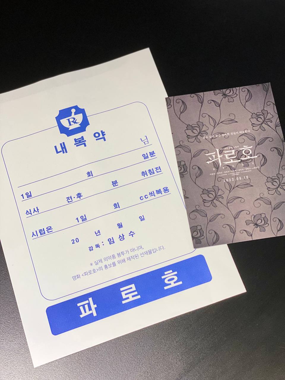 <파로호>를 관람하시면 약봉투 + 스페셜 엽서를 드립니다.