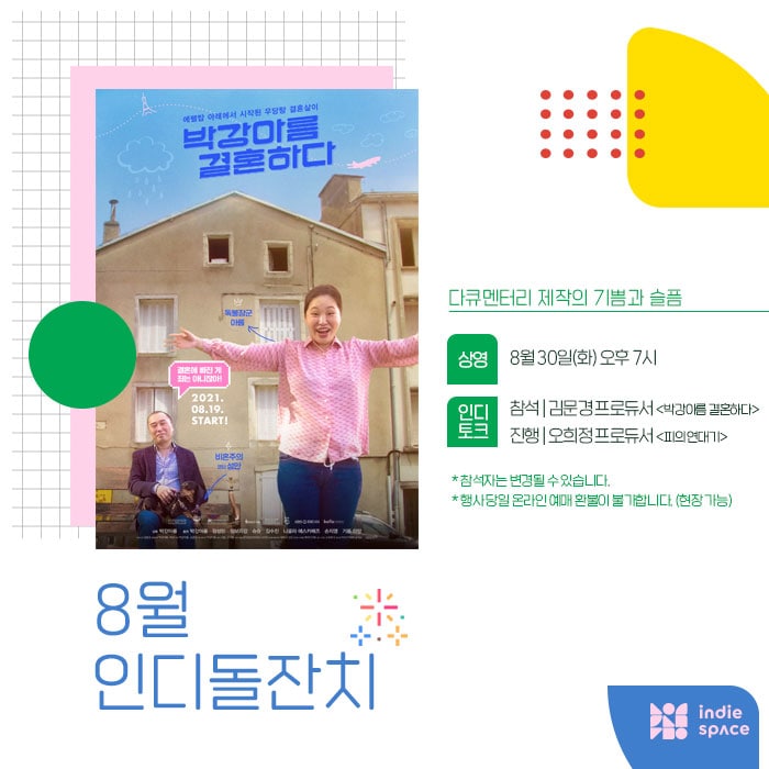 Now Playing/상영시간표 [08.25-08.31 상영시간표] 말아 / 인플루엔자 / 작은새와 돼지씨 / 파로호 / 녹턴 / 모퉁이 / 초록밤 / 모어 / 아치의 노래, 정태춘 by indiespace_은 2022. 8. 18. [클릭] 공유하기 게시글 관리 인디스페이스 indiespace 저작자표시 (새창열림) 'Now Playing > 상영시간표' 카테고리의 다른 글 [09.08-09.14 상영시간표] 성적표의 김민영 / 말아 / 인플루엔자 / 작은새와 돼지씨 / 파로호 / 녹턴 / 모퉁이 (0) 2022.09.01 [09.01-09.07 상영시간표] 성적표의 김민영 / 말아 / 인플루엔자 / 작은새와 돼지씨 / 파로호 / 녹턴 / 모퉁이 / 초록밤 / 아치의 노래, 정태춘 (0) 2022.08.25 [08.18-08.24 상영시간표] 파로호 / 녹턴 / 모퉁이 / 초록밤 / 모어 / 니얼굴 / 아치의 노래, 정태춘 (0) 2022.08.11 [08.11-08.17 상영시간표] 모퉁이 / 초록밤 / 아이를 위한 아이 / 모어 / 니얼굴 / 아치의 노래, 정태춘 (0) 2022.08.05 [08.04-08.10 상영시간표] 초록밤 / 아이를 위한 아이 / 모어 / 니얼굴 / 경아의 딸 / 아치의 노래, 정태춘 (0) 2022.07.28 관련글 [09.08-09.14 상영시간표] 성적표의 김민영 / 말아 / 인플루엔자 / 작은새와 돼지씨 / 파로호 / 녹턴 / 모퉁이 [09.01-09.07 상영시간표] 성적표의 김민영 / 말아 / 인플루엔자 / 작은새와 돼지씨 / 파로호 / 녹턴 / 모퉁이 / 초록밤 / 아치의 노래, 정태춘 [08.18-08.24 상영시간표] 파로호 / 녹턴 / 모퉁이 / 초록밤 / 모어 / 니얼굴 / 아치의 노래, 정태춘 [08.11-08.17 상영시간표] 모퉁이 / 초록밤 / 아이를 위한 아이 / 모어 / 니얼굴 / 아치의 노래, 정태춘 댓글