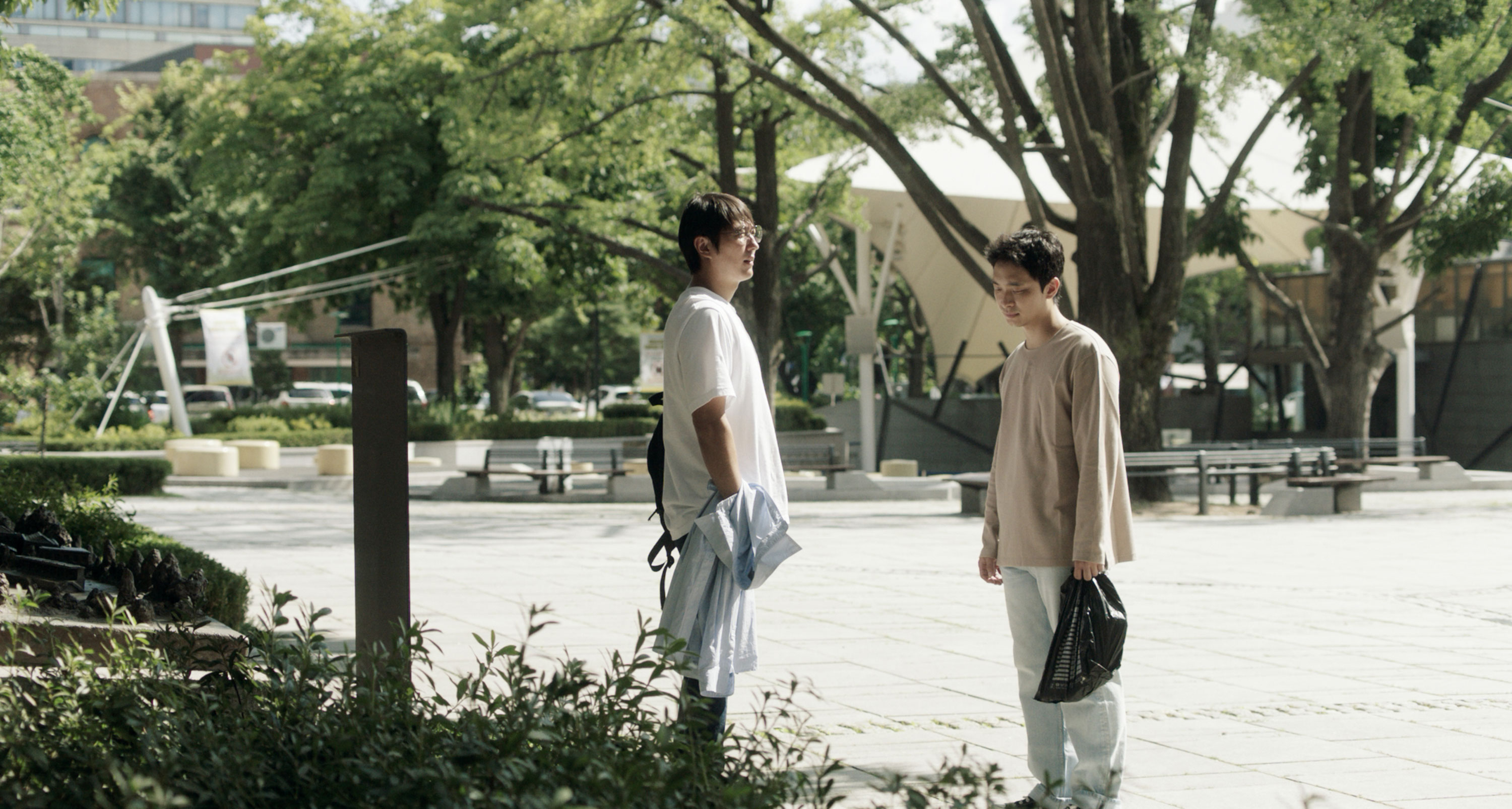 박봉준 배우(이하 박봉준): 저는 하성국 배우와 고등학교 친구인데 공연을 하다가 영화 쪽을 경험해보고 싶다는 생각이 들어서 감독님을 소개받았어요. 앞서 말씀해주신 것처럼 같이 술 마시다가 시나리오 한 번 읽어볼 수 있냐는 제안을 받고 읽어봤어요. 글이 너무 좋아서 하고 싶다고 이야기를 했고 그래서 참여하게 되었습니다. 병수를 연기할 때는 아까 말했던 것처럼 대사가 너무 좋아서 이 대사를 어떻게 잘 전달할까 하는 생각을 가장 중점에 두었습니다. 이 영화에서 병수가 감정적으로 뭔가를 표현하는 게 중요한 일은 아니었다고 생각해요. 관계 속에 있는 사람을 어떻게 바라봐 줄 것인가, 단편적이지 않게 바라봐주기를 바라면서 연기를 했던 것 같아요.
