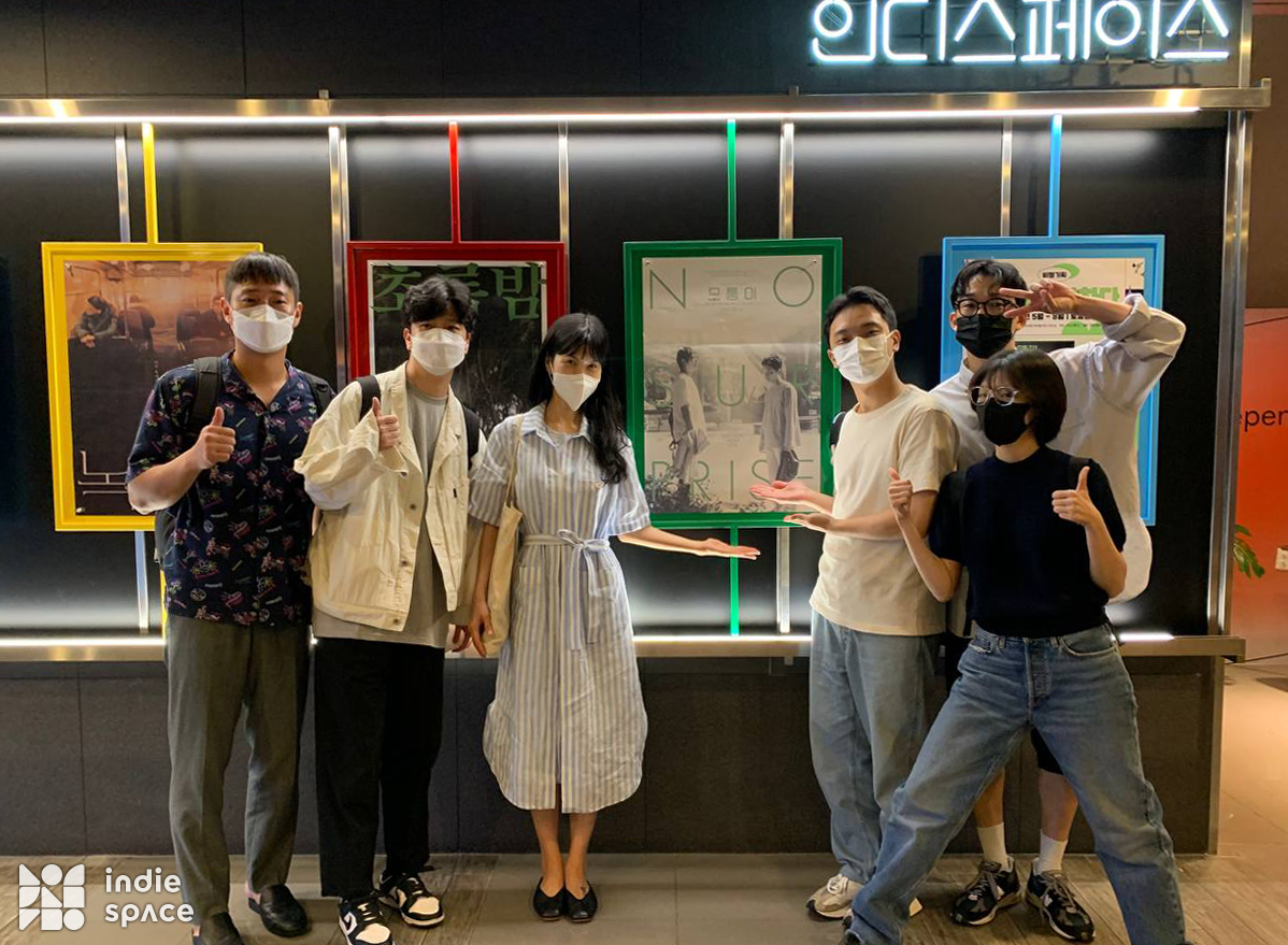 공민정 배우(이하 공민정): 안녕하세요, 저는 오늘 영화 〈모퉁이〉 인디토크 진행을 맡은 공민정입니다. 〈모퉁이〉의 신선 감독, 이택근, 하성국, 박봉준, 백수희 배우를 모시고 이야기 나눠보려고 합니다. 저에게 오늘은 조금 특별한 날이에요. 저랑 너무 가까이 있는 영화거든요. 말씀드리면 저희 건대 동문이에요. 후배 분도 있고 새로운 얼굴도 있지만 대부분 저랑 동기고, 특히나 제가 감독님과 동기이기 때문에 감독님에 대해서 조금은 알고 있어서 더 와닿는 지점이 있었어요. 십몇년을 봤기봤기 때문에 영화를 보고 '정말 오빠 같은 영화가 나왔구나, 이 사람과 정말 닮아 있는 영화가 나왔구나'라는 생각이 들었어요. 처음에는 영화가 좋든 안 좋든, 좋은 마음으로 응원해 주고 싶고 영화가 잘 됐으면 좋겠다는 마음으로 봤는데 영화가 정말 너무 좋은 거예요. 처음부터 끝까지 집중이 됐고 눈을 뗄 수 없었던 것 같아요. 대사 하나하나가 허투루 쓰인 게 없고 어떻게 이렇게 리얼리티를 연출할 수 있는지 감탄했어요. 연출도 그렇고 연기는 또 본인이 많이 드러나는 연기, 어떤 사람인지가 보이는 연기를 개인적으로 좋아하는데 캐릭터들이 다 그렇게 드러났던 것 같아요. 그래서 개인적으로 저는 영화를 너무너무 잘 봤다고 말씀드리고 싶고 좋은 영화를 만들어줘서 너무너무 감사드립니다.