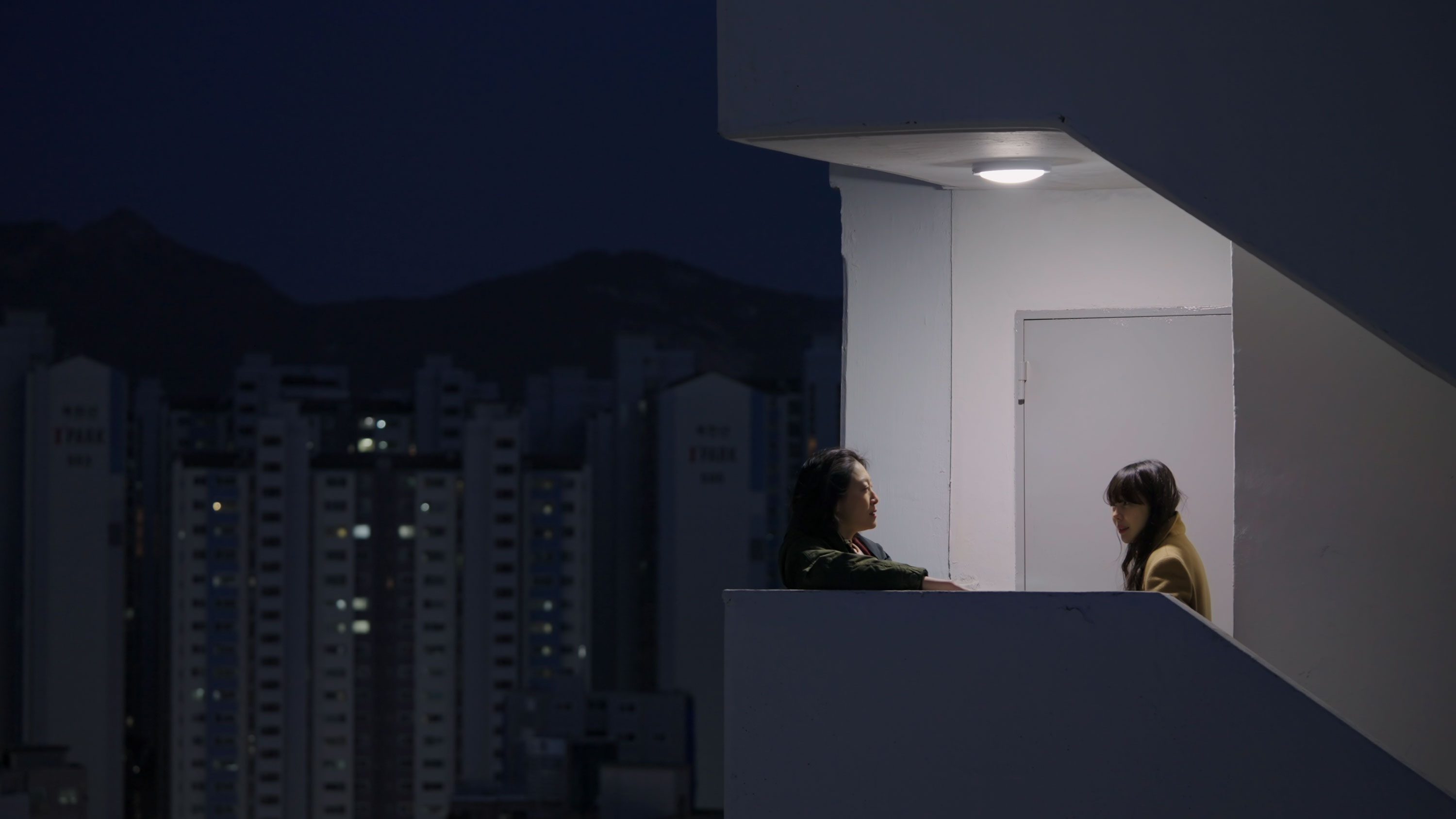 = 장면을 볼 때 대사가 매력적으로 느껴질 때가 있고, 또 공간이나 동선이 매력적으로 느껴질 때가 있잖아요. 시나리오를 써 두고 보니 택시 장면은 어쩌면 글 자체가 매력 포인트가 될 수 있지 않을까 생각했어요. 잘 찍기만 한다면요. 내일 출국한다고 말하는 은영의 들뜬 마음과 설렘. 다시 한국으로 돌아오지 않겠다고 말하지만, 그래도 뭔가 마음에 남은 것 같은 아이러니한 욕망. 이런 마음 자체가 재미있을 것 같다고 생각했어요. 이런 부분이 잘 담겼으면 좋겠다고 생각했고, 만족하는 장면입니다. 승진과 필재 장면의 경우에는, 말씀해 주신 것과 조금 다른 목적이 있었어요. 공간과 동선에 집중했거든요. 화면에 담기는 공간이 무척 크고, 프레임도 고정된 것이 아니라 달리(dolly)를 활용했어요. 택시 장면과는 다른 지점에서 공간과 대화를 어떻게 담아낼 수 있을까 고민했습니다. 영화 전체의 첫 촬영이었는데, 공을 많이 들였어요. 촬영 시간도 가장 길었고 가장 많은 테이크를 찍었죠. 어떤 분기점이 형성되는 지점의 장면이기 때문에 품을 많이 들였던 것 같아요. 저도 좋아하는 장면입니다.