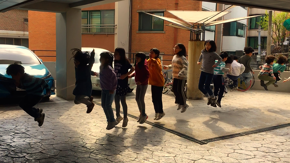 부지영: 정말 좋은 팁인 것 같아요. 저도 터키 아저씨는 알아들었는데 다른 거는 못 알아들었어요. 제가 되게 인상 깊었던 장면은 긴 줄넘기를 넘는 장면이었어요. 처음에 한 대여섯 명의 아이들이 줄넘기 위에 서 있는데 거의 머리 2개 차이 나는 아이가 같이 있거든요. 하나를 했는데 못 뛰어넘죠. 그리고 또 하나 했는데 못 뛰어넘었어요. 13명, 14명 되는 아이들이 성별도, 학년도, 키도 다 다른데 그거를 넘겠다고 서 있는 거예요. 물론 성공하지 못하고 계속 걸렸는데 저는 그 장면이 되게 공동 육아를 표현한 장면 같이 느껴졌어요. 공동육아는 어쨌든 통합 교육이고 다양성과 차이를 인정하는 교육이잖아요. 그걸 받아들이는 교육인데 사실 그 과정이 굉장히 험난하죠. 험난하고 되게 지난하고. 그런데도 줄넘기를 계속 돌리고 있단 말이에요. 그 장면을 보면서 어쩌면 이런 사람들 때문에 지금 우리 교육이 무너지지 않는 것이라는 생각이 들었어요.