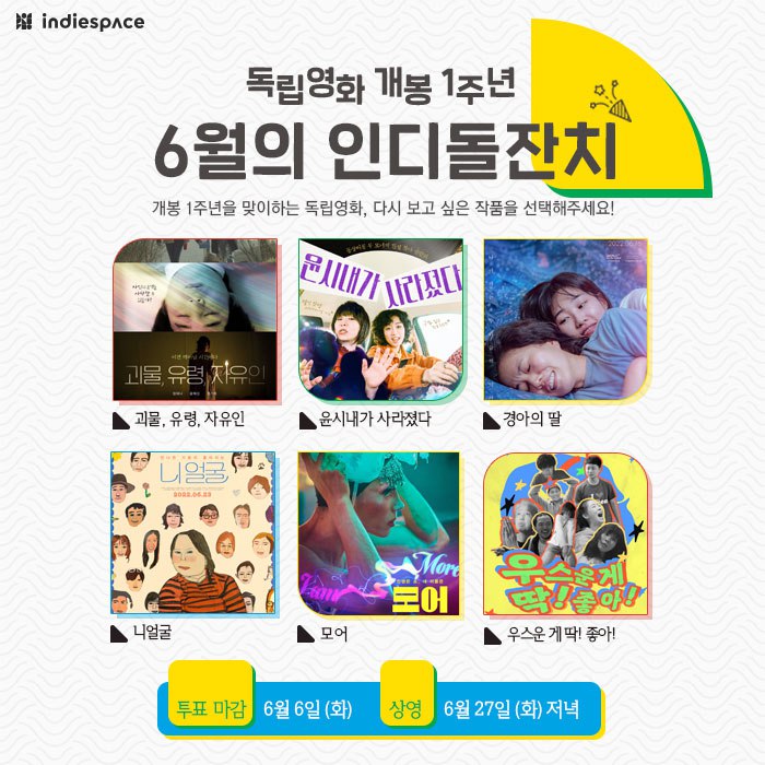| [인디돌잔치] 2023년 8월 상영작을 선정해주세요 (0) | 2023.08.01 |