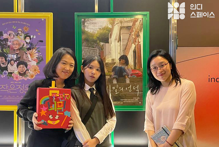 문승아: 혜진이는 그냥 명은이보다 한 수 앞을 보는 사람이라고 생각했어요. 감독님이 말씀하신 것처럼 늘 뭔가를 보태잖아요. 이렇게 하면 친구들이 안 하는 걸 알고 있고, 학교도 많이 다녀 봤고. 그냥 도서관만 만들고 생일 축하만 하면 애들이 좋아하지 않을 걸 알고 있는 것 같았어요.